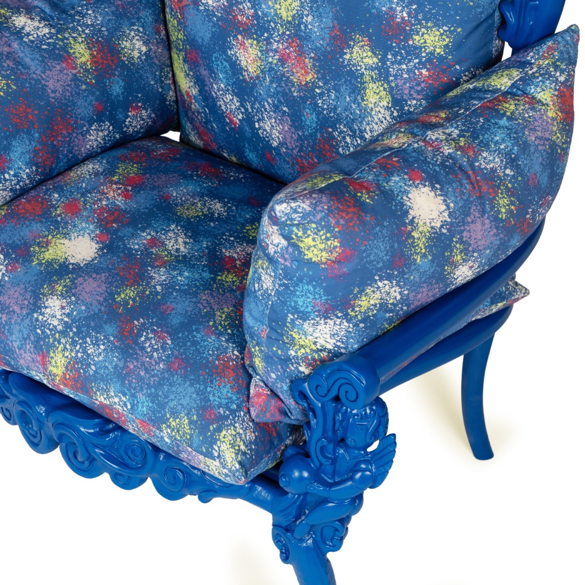 L’Italia non è un paese, è un mare di storie. Agata graffiti è una poltrona ornamentale progettata da Antonio Aricò per celebrare la Proust di Alessandro Mendini e Sant’Agata, una festa siciliana che è la terza festa popolare più grande al mondo. Ogni esemplare è personalizzato da Aricò con bombolette spray dai colori metallici.