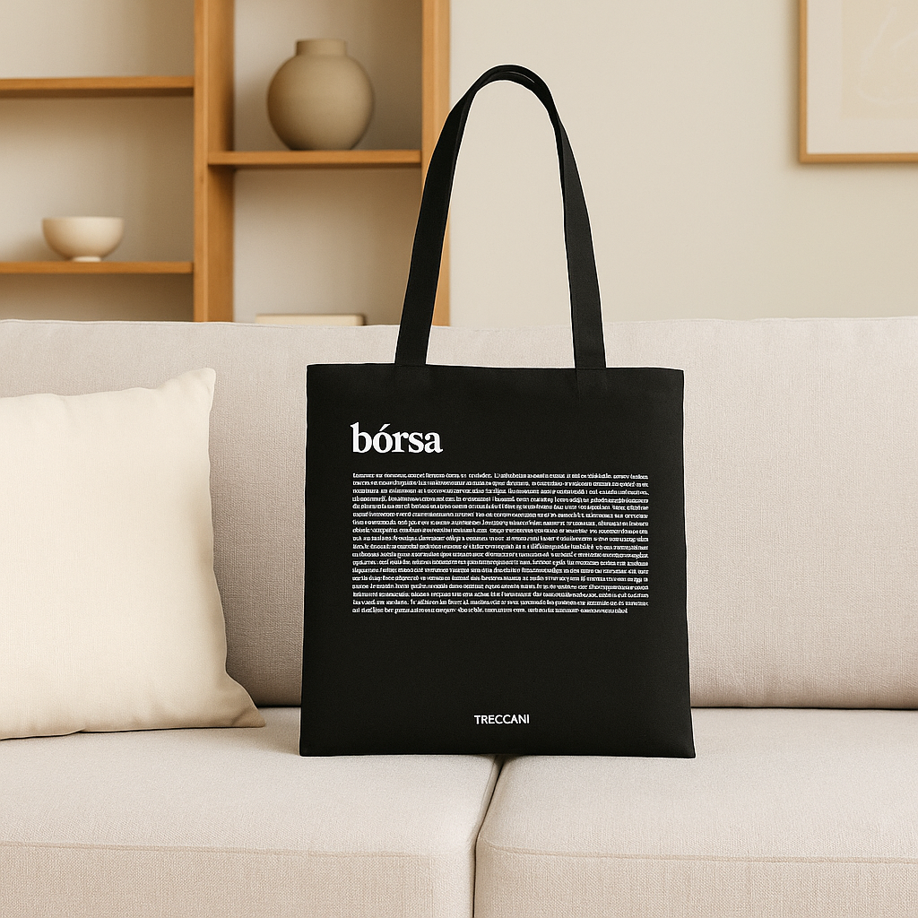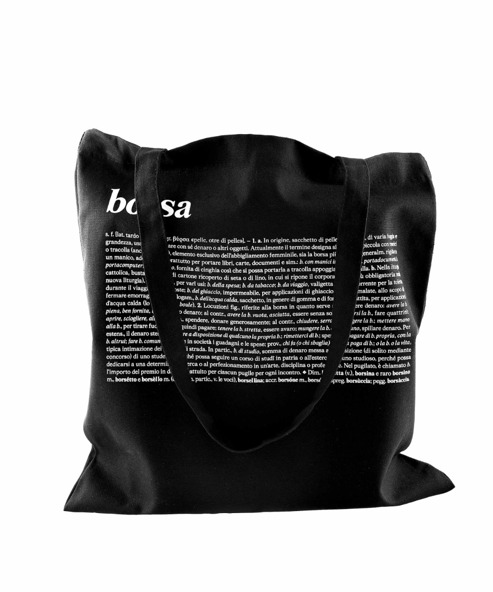 Borsa Treccani fa parte della collezione “Definizione”, una linea di oggetti per tutti i giorni, nata per riscoprire l’importanza di un immenso patrimonio culturale comune: la lingua italiana.