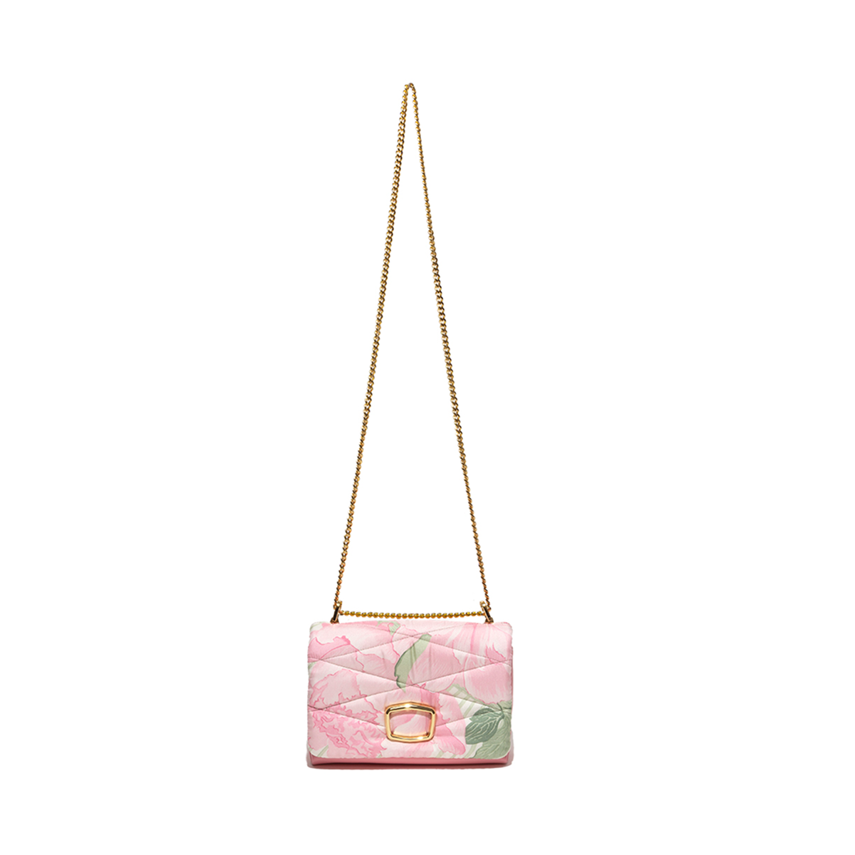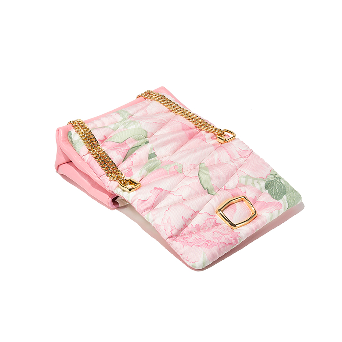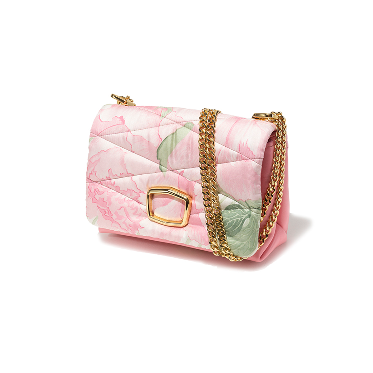 In tutta la collezione, MM33 combina la morbidezza della seta con la qualità della pelle d’agnello, conferendo alla borsa grande adattabilità alle forme femminili e, allo stesso tempo, raffinatezza ed eleganza. Il foulard aggiunge carattere alla borsa e l’imbottitura trapuntata dà struttura e corpo alla seta.