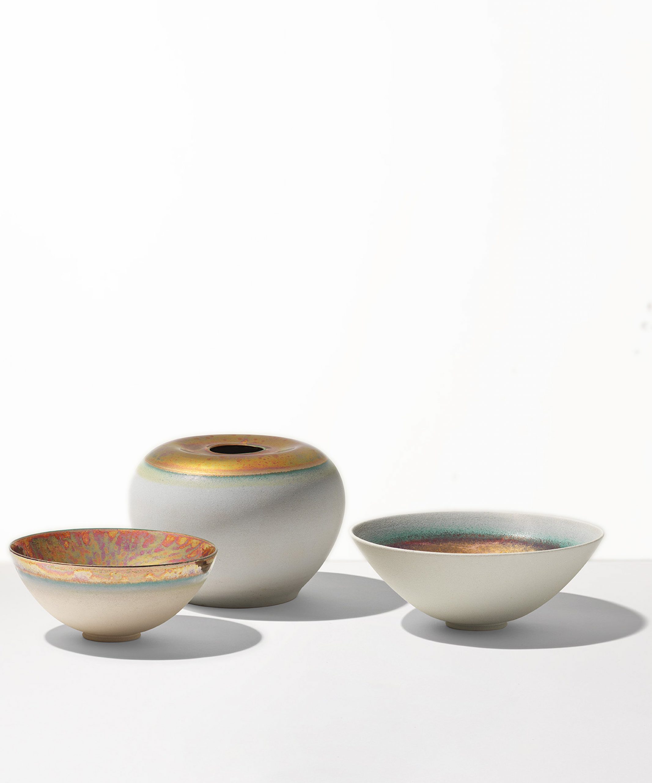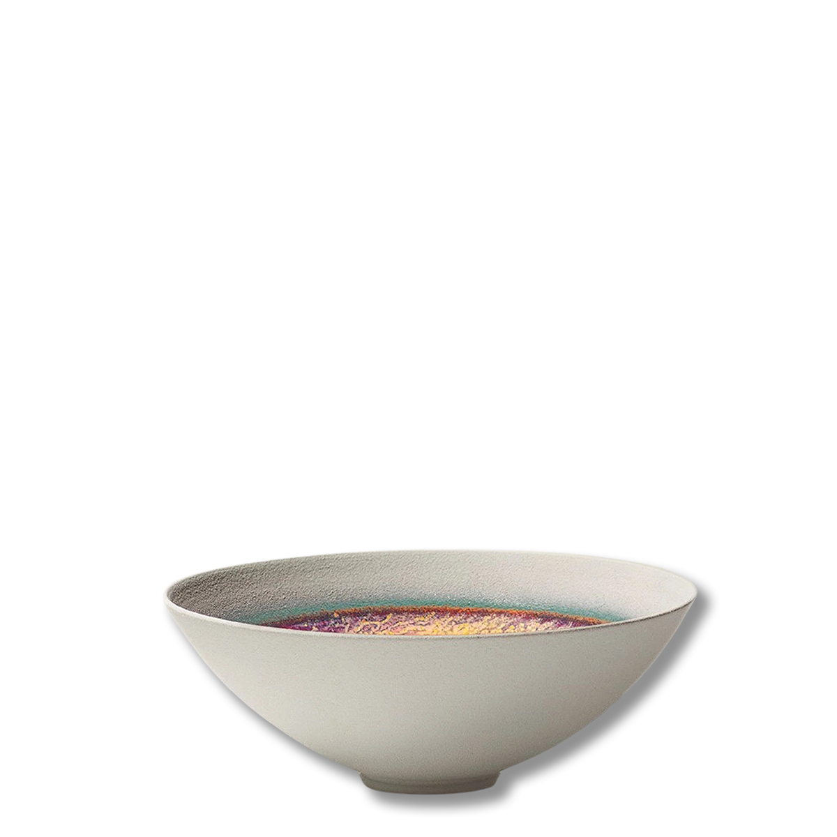 Nata nel 1928 a Faenza, l’azienda Gatti si dedica da quasi un secolo alla produzione artigianale di oggetti in ceramica, distinguendosi per la mirata attenzione nella scelta dei materiali, per un’assidua ricerca di linguaggi e tecniche innovative che ancora oggi continuano a confermare una costante attenzione ai cambiamenti del contemporaneo e una processualità nella lavorazione della maiolica, interamente fatta a mano, che è il fiore all’occhiello di questa fabbrica storica. All’interno della collezione “Crateri” vengono presentate le creazioni ottenute mediante il contrasto materico e cromatico tra superficie esterna ed interna, in cui il riflesso metallico profondo contamina il colore rendendolo quasi incandescente alla vista, per poi sfumare nella rugosità materica resa grazie all’utilizzo di smalti molto opachi e polverosi. Nella celebre Ciotola Aurora G l’effetto cromato dell’interno si sposa perfettamente con l’esterno in colore azzurro acqua opaco, per un equilibrio delicato tra leggerezza e stile.