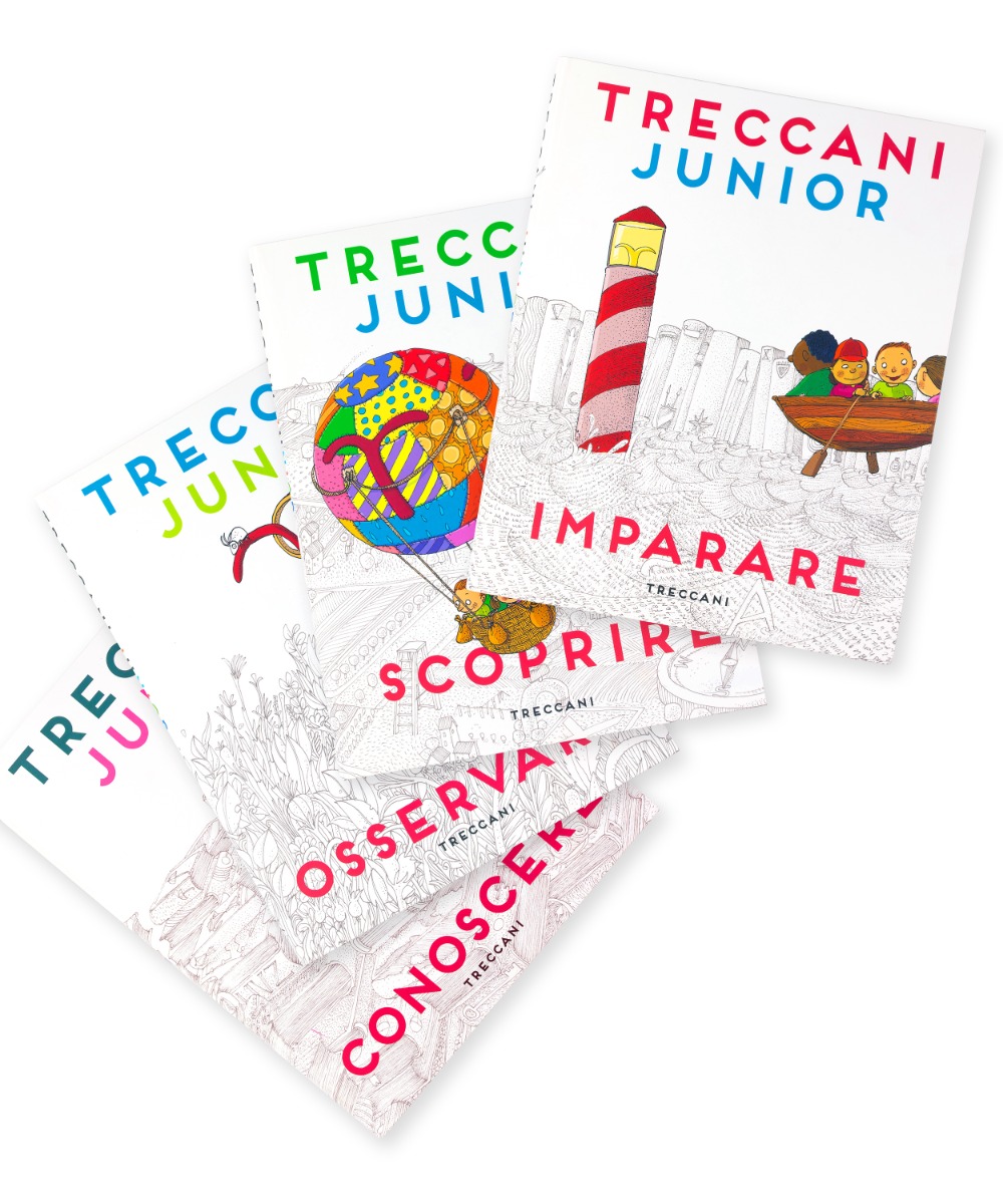Treccani Junior è la prima opera che l’Istituto della Enciclopedia Italiana dedica ai più piccoli, con lo scopo di accompagnarli in nuovi e più stimolanti percorsi del sapere contemporaneo. Strutturata in quattro volumi – Osservare, Scoprire, Imparare, Conoscere – nasce con l’intento di consentire ai più piccoli un primo approccio a un sapere organizzato e certificato. Attraverso oltre 300 immagini, 760 illustrazioni e l’uso di un linguaggio semplice e immediato, questa opera si offre come strumento efficace per supportare i giovanissimi nei loro primi anni di studio.
