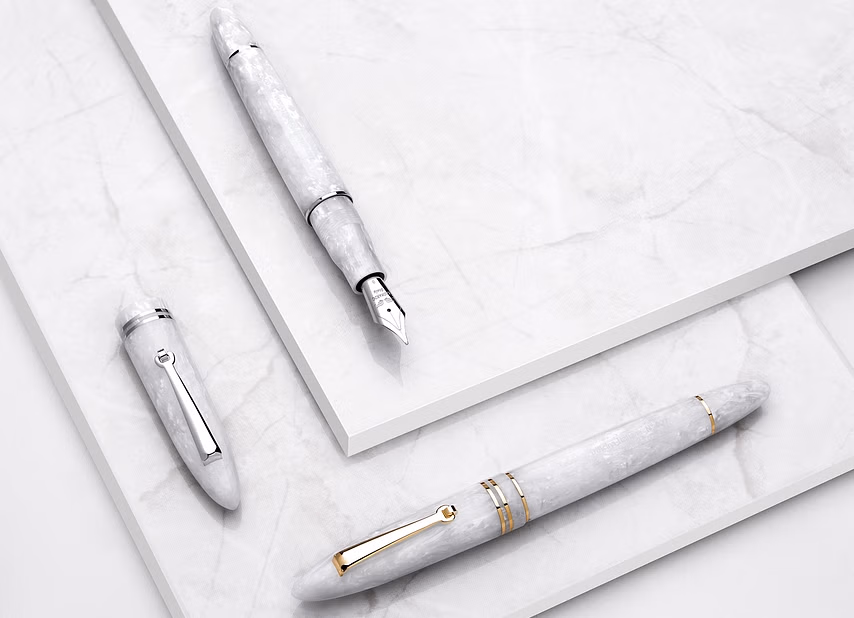 Questa idea si è tradotta nella creazione di oggetti unici che rendono omaggio ai sistemi di riempimento d'epoca, ai materiali e alle tecniche tradizionali. Ogni penna è realizzata interamente in Italia, nello stabilimento Leonardo di Caserta, con materiali accuratamente selezionati come ebanite, legno, resine e metalli preziosi, e celebra il luogo in cui nasce.