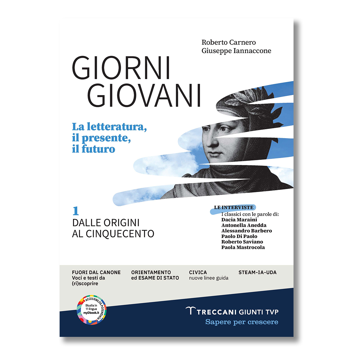 Giorni giovani è la nuova edizione della Carnero-Iannaccone, nata per rispondere alle esigenze della scuola di oggi. Il progetto editoriale, pensato per dare solide basi di conoscenze disciplinari, guida ragazze e ragazzi nello studio grazie all’organizzazione efficace dei suoi contenuti e li coinvolge con i numerosi apparati didattici che invitano alla riflessione sulla letteratura, sul presente e sul futuro.
