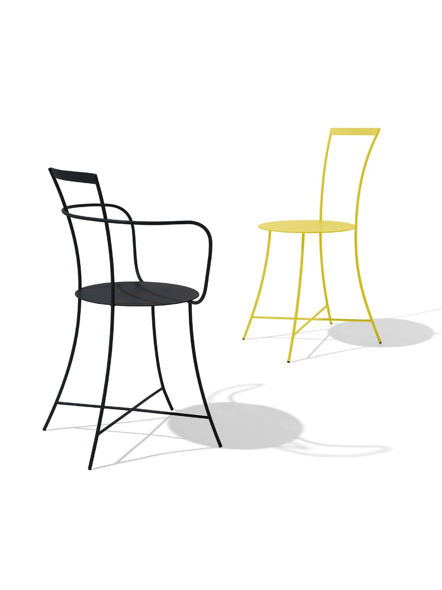 Il segno grafico netto che la distingue, quasi fosse solo un profilo, un’ombra, rende Irma una presenza silenziosa che quasi si mimetizza con l’ambiente circostante e per questo motivo è adatta a tutti i contesti outdoor: terrazzi, cortili, giardini.