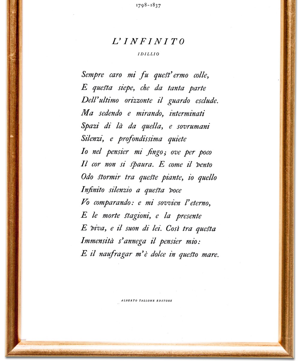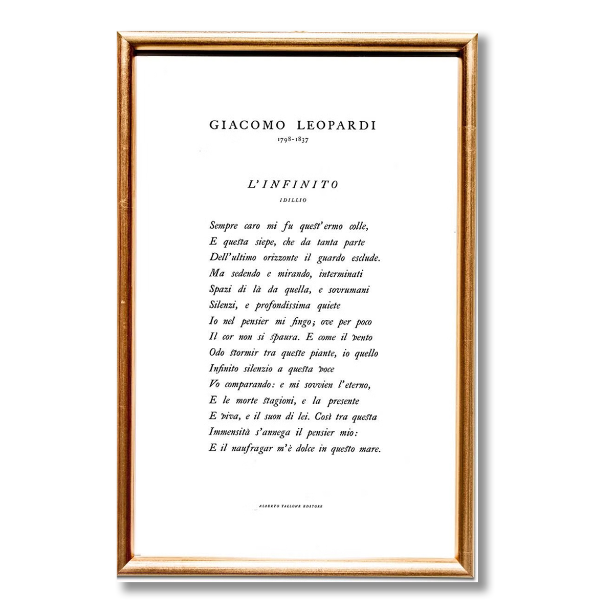 Sonetto composto a mano lettera per lettera. Cornice in vetro e legno con gancetto triangolare a scomparsa per il fissaggio a parete.