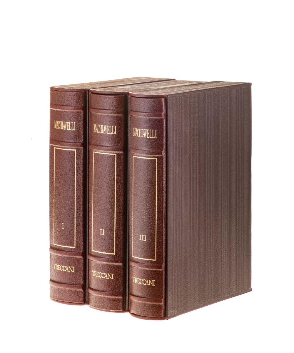 Il terzo volume comprende tutte le più importanti opere di Machiavelli (Il Principe, Discorsi sopra la prima deca di Tito Livio, L’Arte della guerra, Le Istorie fiorentine, La Mandragola, Clizia) e i due più significativi carteggi del Segretario fiorentino con Francesco Vettori e con Francesco Guicciardini. Accompagna l’edizione, la ristampa anastatica di De Principatibus nella versione del codice Barberiniano latino 5093, custodito presso la Biblioteca Apostolica Vaticana.