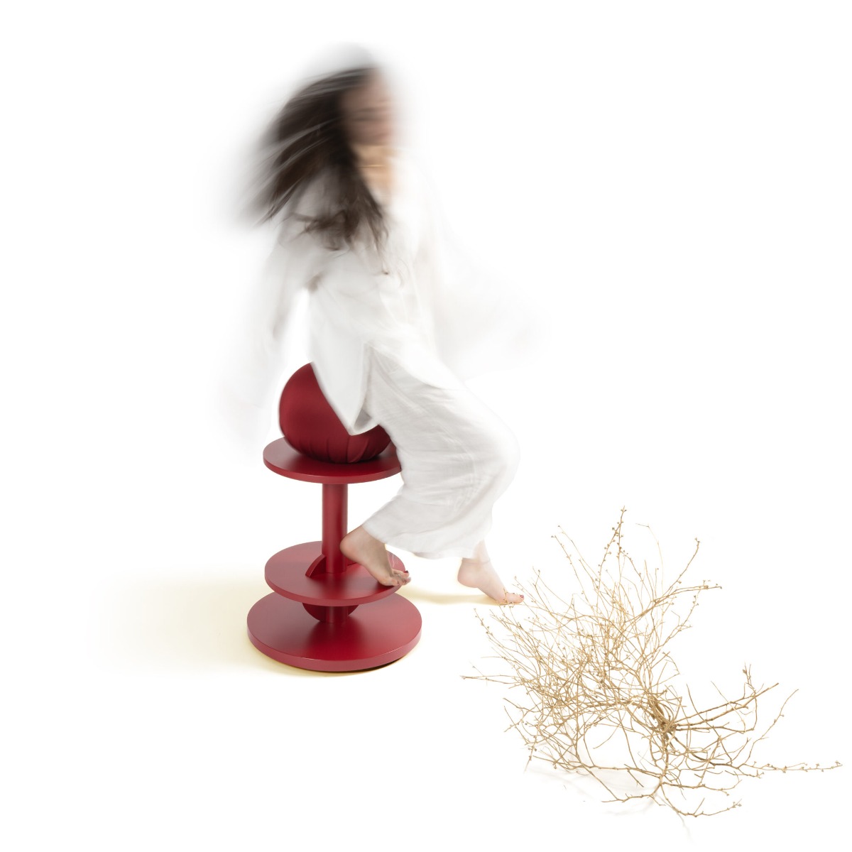 La casa è una scacchiera che diventa testimone delle nostre mosse, dei nuovi rituali. Matto è un oggetto ipersimbolico, uno sgabello che, come un pedone degli scacchi, trasforma l’ambiente domestico in un gioco.