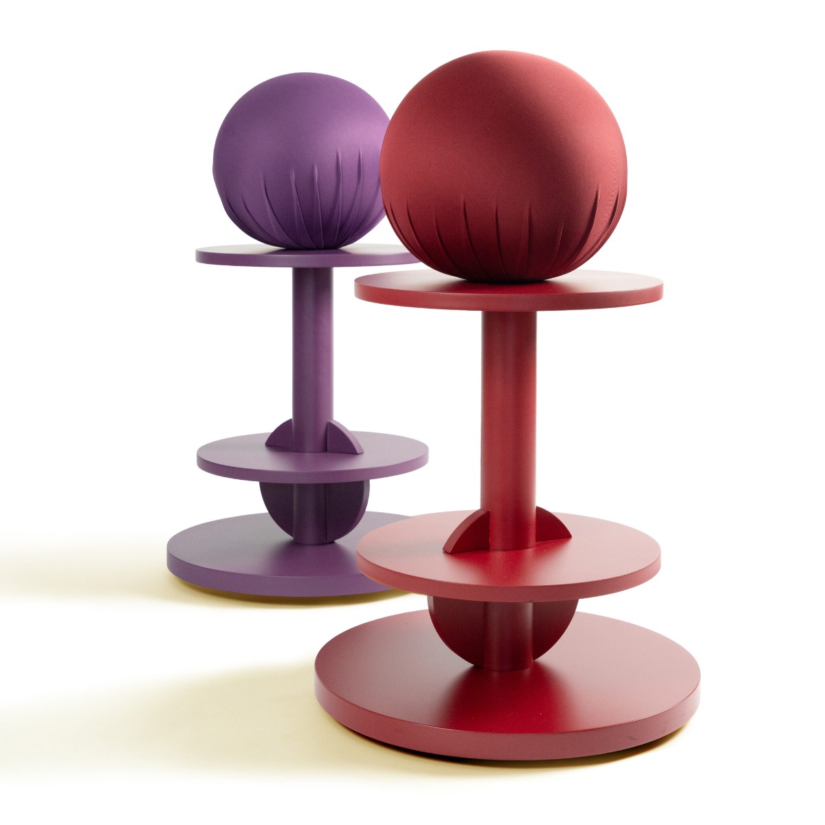 Struttura in MDF laccato ottanio/viola/bordeaux opaco, seduta poliuretano con rivestimento in tessuto bielastico ottanio/viola/bordeaux. Dimensioni (cm): Ø 48 x H 80 Realizzato a mano in Italia |
