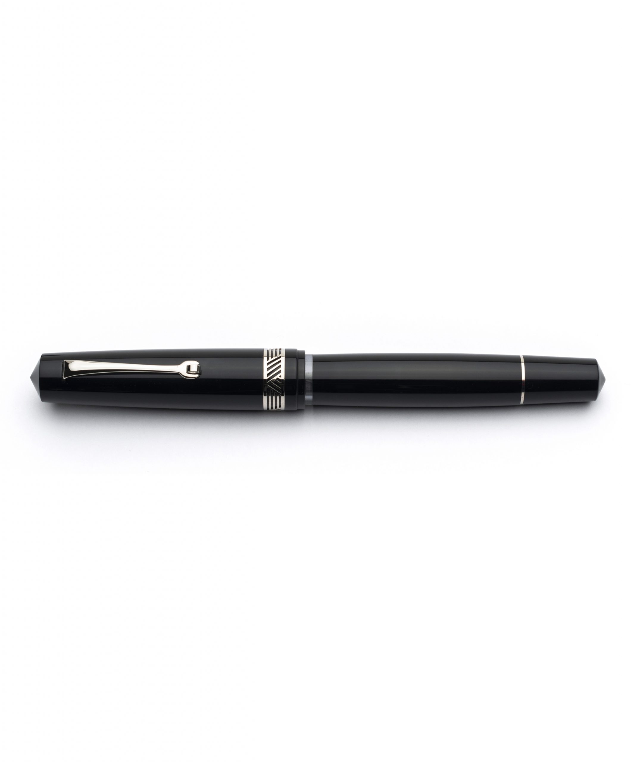 C’è un filo conduttore, un concetto che viene espresso in ogni collezione Leonardo: linee forti e design che esprimono emozioni. Momento Magico Glossy Black è ispirata all’età d’oro della stilografica italiana degli anni ’30 e ’40. La resina nera lucida si arricchisce di una finestra trasparente grigia, dove è possibile controllare il livello dell’inchiostro. L'”Anima nera” è disponibile con parti metalliche in rutenio, oro e argento. La fascia centrale traforata è decorata con linee ispirate al periodo noto nella storia dell’arte come “Arte Geometrica”, e indica la produzione di decorazioni della civiltà greca tra il 900 e il 700 a.C., che prende il nome dal termine tradizionalmente usato per la ceramica, e la produzione dello stesso periodo.
