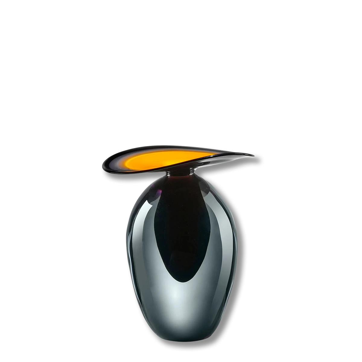 Dettagli | Design di de Allegri & Fogale; Vetro sommerso, sfumato, modellato a mano, incalmo; Colore giallo/grigio acciaio; Dimensioni 20 × 20 × 25 cm |