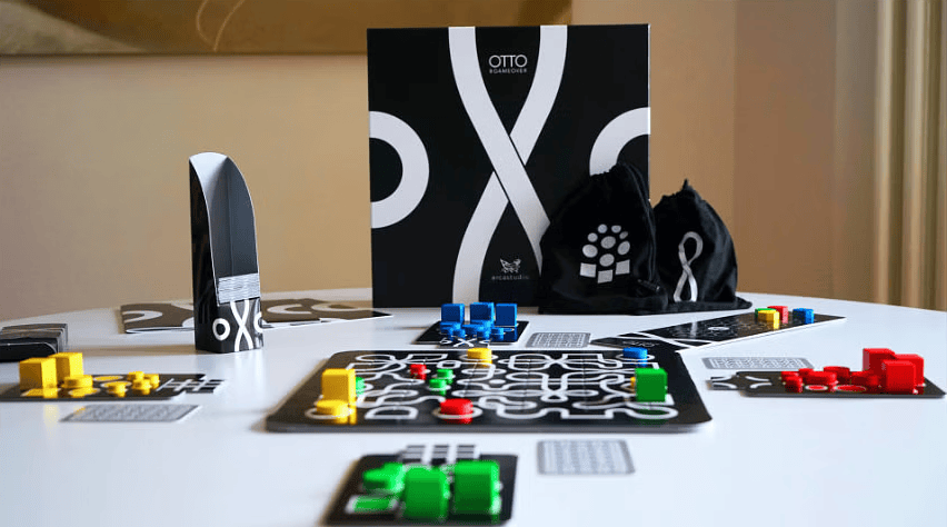 Ideato da Frank (Franco Caniatti) e sviluppato poi nella sua agenzia di comunicazione, Arcastudio, durante il primo lockdown del 2020, OTTO ha partecipato ad una campagna Kickstarter di successo ed è stato selezionato dall’ADI Design Index. Inoltre OTTO è stato progettato e prodotto per lasciare il minimo impatto ambientale sul nostro Pianeta. Sono 4 i materiali con cui è realizzato: carta, cartone, cotone e legno. A parte il cellophane protettivo che avvolge la scatola OTTO può essere definito un gioco da tavolo Plastic-free. È un gioco 100% made in Italy, anzi made in Turin.