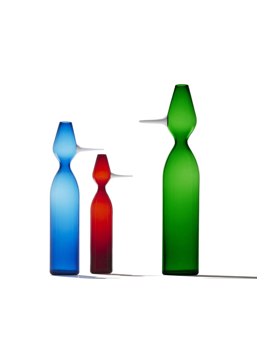 Ironia della sorte, il punto di forza del progetto, totalmente realizzato artigianalmente, è il naso in pasta di vetro bianca, la cui lunghezza è sempre diversa… a seconda dell’estro del maestro soffiatore, rendendo anche l’oggetto un pezzo unico.