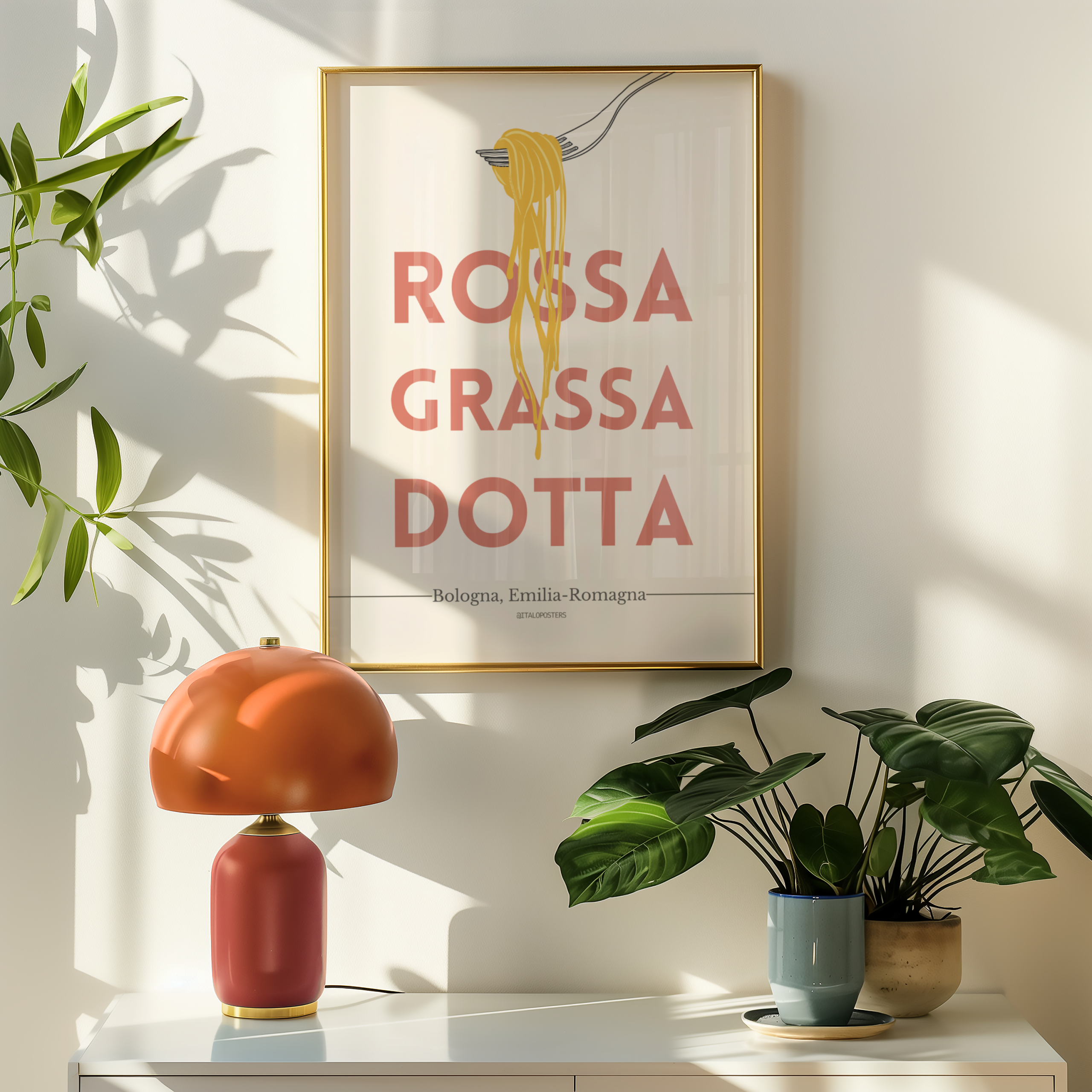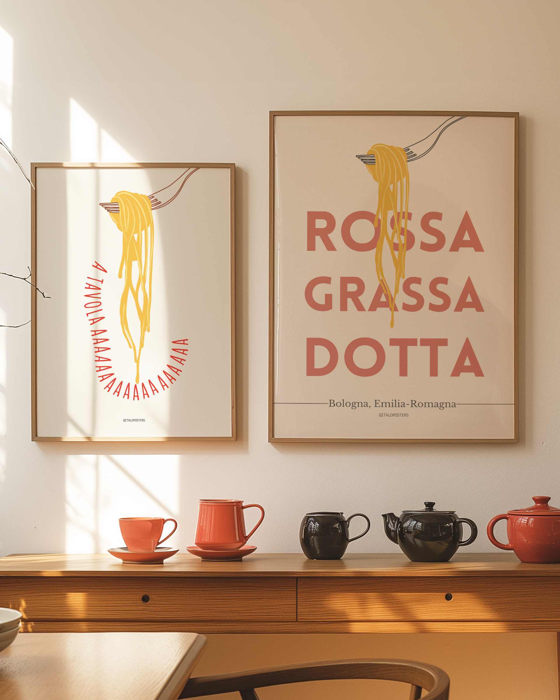 Un tributo alla tradizione gastronomica e culturale di Bologna, con un’illustrazione della pasta che richiama i sapori autentici della città e il suo motto “Rossa, Grassa, Dotta”. Questo poster celebra l’anima popolare di Bologna, unendo il gusto per la buona cucina alla sua ricca storia accademica e vivace identità. Perfetto per chi ama la cultura bolognese, aggiunge un tocco di calore e carattere a qualsiasi spazio, rendendo omaggio alla città delle torri, dei portici e della pasta fatta a mano.