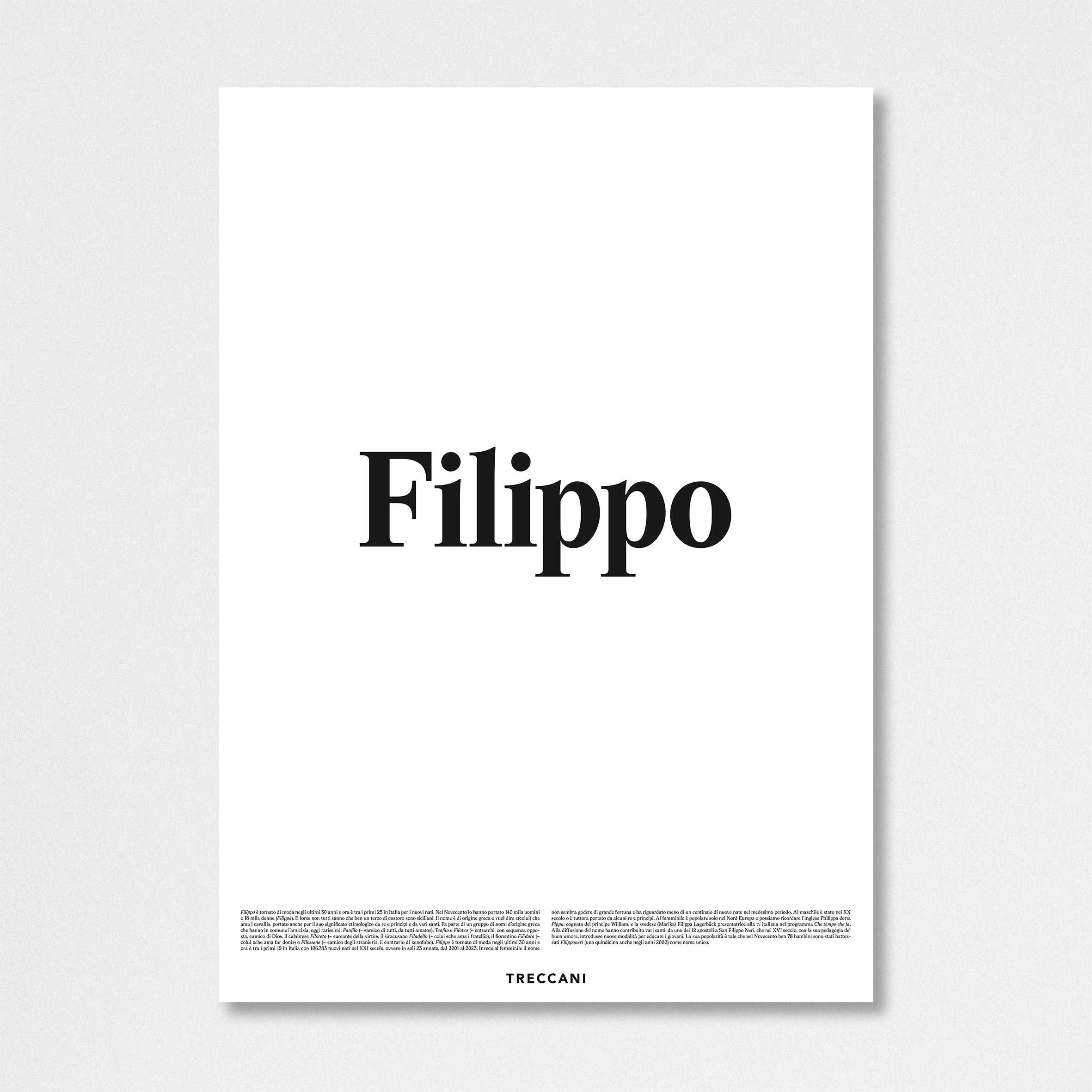 | Definizione | Filippo è tornato di moda negli ultimi 30 anni e ora è tra i primi 25 in Italia per i nuovi nati. Nel Novecento lo hanno portato 140 mila uomini e 18 mila donne (Filippa). E forse non tutti sanno che ben un terzo di costoro sono siciliani. Il nome è di origine greca e vuol dire «(colui) che ama i cavalli», portato anche per il suo significato etimologico da re e principi e da vari santi. Fa parte di un gruppo di nomi d’origine greca che hanno in comune l’amicizia, oggi rarissimi: Panfilo (= «amico di tutti, da tutti amato»), Teofilo e Filoteo (= entrambi, con sequenza opposta, «amico di Dio», il calabrese Filoreto (= «amante della virtù», il siracusano Filadelfo (= colui «che ama i fratelli»), il fiorentino Filidoro (= colui «che ama far doni») e Filossene (= «amico degli stranieri», il contrario di xenofobo). Filippo è tornato di moda negli ultimi 30 anni e ora è tra i primi 19 in Italia con 106.783 nuovi nati nel XXI secolo, ovvero in soli 23 annate, dal 2001 al 2023. Invece al femminile il nome non sembra godere di grande fortuna e ha riguardato meno di un centinaio di nuove nate nel medesimo periodo. Al maschile è stato nel XX secolo o è tuttora portato da alcuni re e prìncipi. Al femminile è popolare solo nel Nord Europa e possiamo ricordare l’inglese Philippa detta Pippa, cognata del principe William, e la svedese (Marika) Filippa Lagerbäck presentatrice alla tv italiana nel programma Che tempo che fa. Alla diffusione del nome hanno contribuito vari santi, da uno dei 12 apostoli a San Filippo Neri, che nel XVI secolo, con la sua pedagogia del buon umore, introdusse nuove modalità per educare i giovani. La sua popolarità è tale che nel Novecento ben 78 bambini sono stati battezzati Filipponeri (una quindicina anche negli anni 2000) come nome unico. |