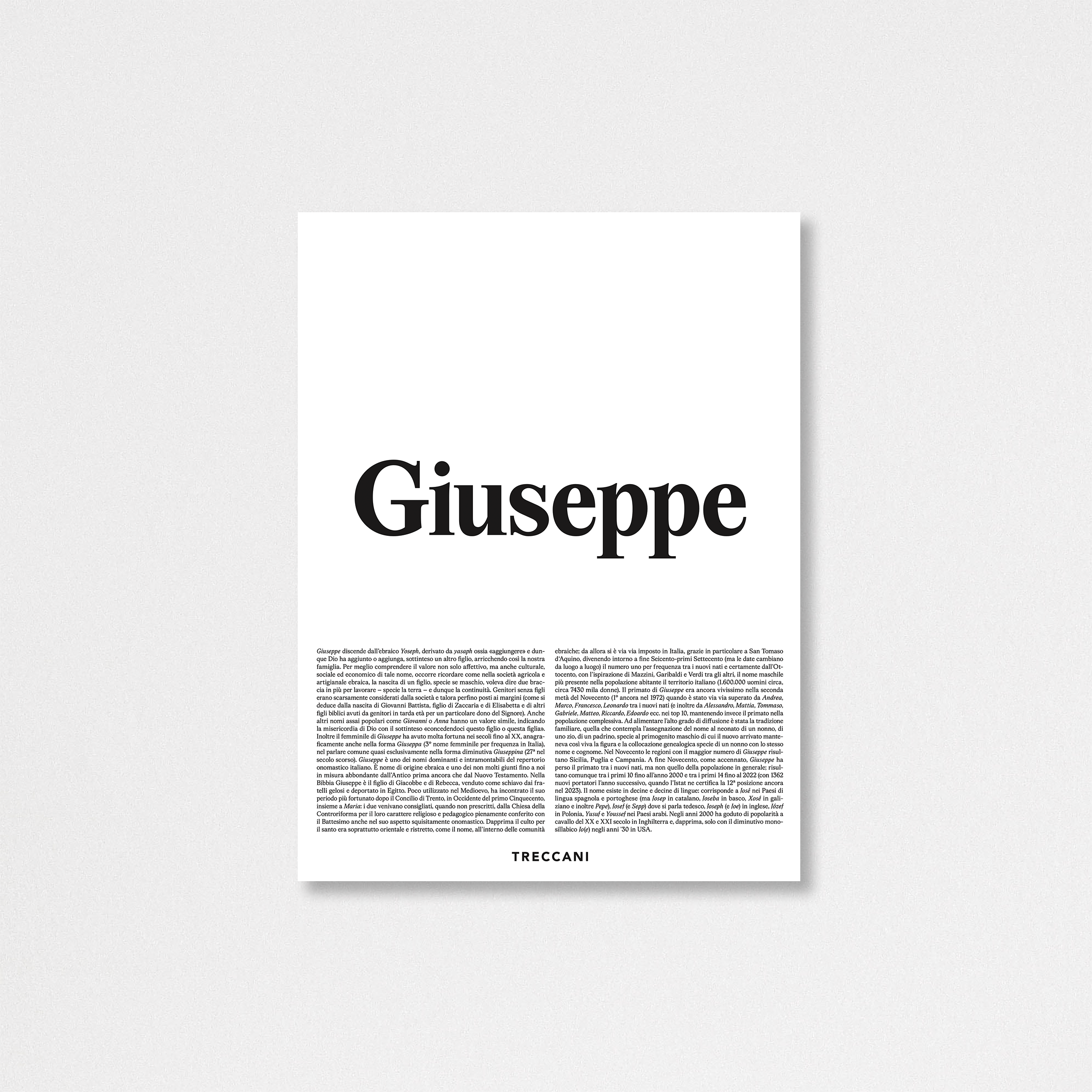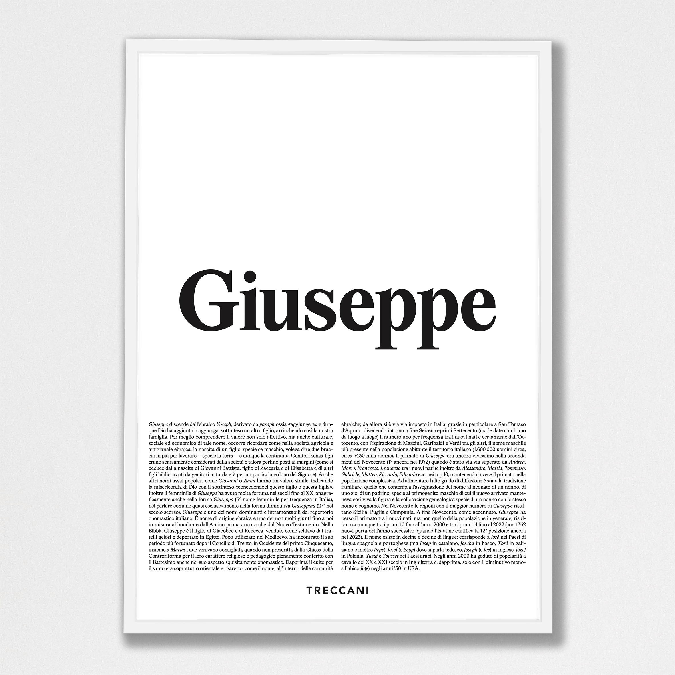 | Definizione | Giuseppe discende dall’ebraico Yoseph, derivato da yasaph ossia «aggiungere» e dunque Dio ha aggiunto o aggiunga, sottinteso un altro figlio, arricchendo così la nostra famiglia. Per meglio comprendere il valore non solo affettivo, ma anche culturale, sociale ed economico di tale nome, occorre ricordare come nella società agricola e artigianale ebraica, la nascita di un figlio, specie se maschio, voleva dire due braccia in più per lavorare – specie la terra – e dunque la continuità. Genitori senza figli erano scarsamente considerati dalla società e talora perfino posti ai margini (come si deduce dalla nascita di Giovanni Battista, figlio di Zaccaria e di Elisabetta e di altri figli biblici avuti da genitori in tarda età per un particolare dono del Signore). Anche altri nomi assai popolari come Giovanni o Anna hanno un valore simile, indicando la misericordia di Dio con il sottinteso «concedendoci questo figlio o questa figlia». Inoltre il femminile di Giuseppe ha avuto molta fortuna nei secoli fino al XX, anagraficamente anche nella forma Giuseppa (3º nome femminile per frequenza in Italia), nel parlare comune quasi esclusivamente nella forma diminutiva Giuseppina (27ª nel secolo scorso). Giuseppe è uno dei nomi dominanti e intramontabili del repertorio onomastico italiano. È nome di origine ebraica e uno dei non molti giunti fino a noi in misura abbondante dall’Antico prima ancora che dal Nuovo Testamento. Nella Bibbia Giuseppe è il figlio di Giacobbe e di Rebecca, venduto come schiavo dai fratelli gelosi e deportato in Egitto. Poco utilizzato nel Medioevo, ha incontrato il suo periodo più fortunato dopo il Concilio di Trento, in Occidente del primo Cinquecento, insieme a Maria: i due venivano consigliati, quando non prescritti, dalla Chiesa della Controriforma per il loro carattere religioso e pedagogico pienamente conferito con il Battesimo anche nel suo aspetto squisitamente onomastico. Dapprima il culto per il santo era soprattutto orientale e ristretto, come il nome, all’interno delle comunità ebraiche; da allora si è via via imposto in Italia, grazie in particolare a San Tomaso d‘Aquino, divenendo intorno a fine Seicento-primi Settecento (ma le date cambiano da luogo a luogo) il numero uno per frequenza tra i nuovi nati e certamente dall’Ottocento, con l’ispirazione di Mazzini, Garibaldi e Verdi tra gli altri, il nome maschile più presente nella popolazione abitante il territorio italiano (1.600.000 uomini circa, circa 7430 mila donne). Il primato di Giuseppe era ancora vivissimo nella seconda metà del Novecento (1º ancora nel 1972) quando è stato via via superato da Andrea, Marco, Francesco, Leonardo tra i nuovi nati (e inoltre da Alessandro, Mattia, Tommaso, Gabriele, Matteo, Riccardo, Edoardo ecc. nei top 10, mantenendo invece il primato nella popolazione complessiva. Ad alimentare l’alto grado di diffusione è stata la tradizione familiare, quella che contempla l’assegnazione del nome al neonato di un nonno, di uno zio, di un padrino, specie al primogenito maschio di cui il nuovo arrivato manteneva così viva la figura e la collocazione genealogica specie di un nonno con lo stesso nome e cognome. Nel Novecento le regioni con il maggior numero di Giuseppe risultano Sicilia, Puglia e Campania. A fine Novecento, come accennato, Giuseppe ha perso il primato tra i nuovi nati, ma non quello della popolazione in generale; risultano comunque tra i primi 10 fino all’anno 2000 e tra i primi 14 fino al 2022 (con 1362 nuovi portatori l’anno successivo, quando l’Istat ne certifica la 12ª posizione ancora nel 2023). Il nome esiste in decine e decine di lingue: corrisponde a Jose nei Paesi di lingua spagnola e portoghese (ma Josep in catalano, Joseba in basco, Xose in galiziano e inoltre Pepe), Josef (e Sepp) dove si parla tedesco, Joseph (e Joe) in inglese, Jozef in Polonia, Yusuf e Youssef nei Paesi arabi. Negli anni 2000 ha goduto di popolarità a cavallo del XX e XXI secolo in Inghilterra e, dapprima, solo con il diminutivo monosillabico Jo(e) negli anni ’30 in USA. |