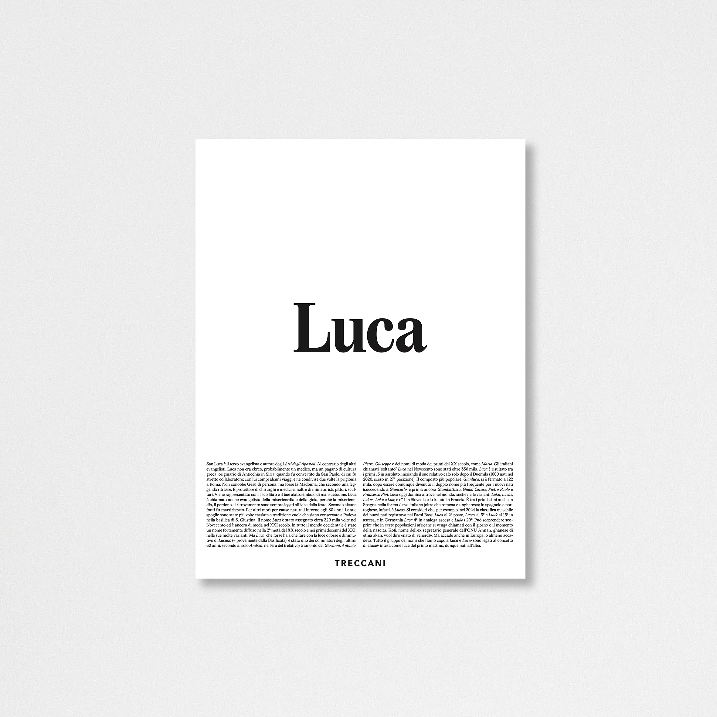 | Definizione | San Luca è il terzo evangelista e autore degli Atti degli Apostoli. Al contrario degli altri evangelisti, Luca non era ebreo, probabilmente un medico, ma un pagano di cultura greca, originario di Antiochia in Siria. quando fu convertito da San Paolo, di cui fu stretto collaboratore; con lui compì alcuni viaggi e ne condivise due volte la prigionia a Roma. Non conobbe Gesù di persona, ma forse la Madonna, che secondo una leggenda ritrasse. È protettore di chirurghi e medici e inoltre di miniaturisti, pittori, scultori. Viene rappresentato con il suo libro e il bue alato, simbolo di mansuetudine. Luca è chiamato anche evangelista della misericordia e della gioia, perché la misericordia, il perdono, il ritrovamento sono sempre legati all’idea della festa. Secondo alcune fonti fu martirizzato. Per altri morì per cause naturali intorno agli 80 anni. Le sue spoglie sono state più volte traslate e tradizione vuole che siano conservate a Padova nella basilica di S. Giustina. Il nome Luca è stato assegnato circa 320 mila volte nel Novecento ed è ancora di moda nel XXI secolo. In tutto il mondo occidentale è stato un nome fortemente diffuso nella 2ª metà del XX secolo e nei primi decenni del XXI, nelle sue molte varianti. Ma Luca, che forse ha a che fare con la luce o forse è diminutivo di Lucano (= proveniente dalla Basilicata), è stato uno dei dominatori degli ultimi 60 anni, secondo al solo Andrea, nell’era del (relativo) tramonto dei Giovanni, Antonio, Pietro, Giuseppe e dei nomi di moda dei primi del XX secolo, come Mario. Gli italiani chiamati “soltanto” Luca nel Novecento sono stati oltre 330 mila. Luca è risultato tra i primi 15 in assoluto, iniziando il suo relativo calo solo dopo il Duemila (1600 nati nel 2020, sceso in 27ª posizione). Il composto più popolare, Gianluca, si è fermato a 122 mila, dopo essere comunque divenuto il doppio nome più frequente per i nuovi nati (succedendo a Giancarlo, e prima ancora Giambattista, Giulio Cesare, Pietro Paolo e Francesco Pio). Luca oggi domina altrove nel mondo, anche nelle varianti Luka, Lucas, Lukas, Luke e Luk; è nº 1 in Slovenia e lo è stato in Francia. È tra i primissimi anche in Spagna nella forma Luca, italiana (oltre che romena e ungherese); in spagnolo e portoghese, infatti, è Lucas. Si consideri che, per esempio, nel 2024 la classifica maschile dei nuovi nati registrava nei Paesi Bassi Luca al 2ª posto, Lucas al 3º e Luuk al 15º in ascesa, e in Germania Luca 4º in analoga ascesa e Lukas 20º. Può sorprendere scoprire che in certe popolazioni africane si venga chiamati con il giorno o il momento della nascita. Kofi, nome dell’ex segretario generale dell’ONU Annan, ghanese di etnia akan, vuol dire «nato di venerdì». Ma accade anche in Europa, o almeno accadeva. Tutto il gruppo dei nomi che fanno capo a Luca e Lucio sono legati al concetto di «luce» intesa come luce del primo mattino, dunque nati all’alba. |