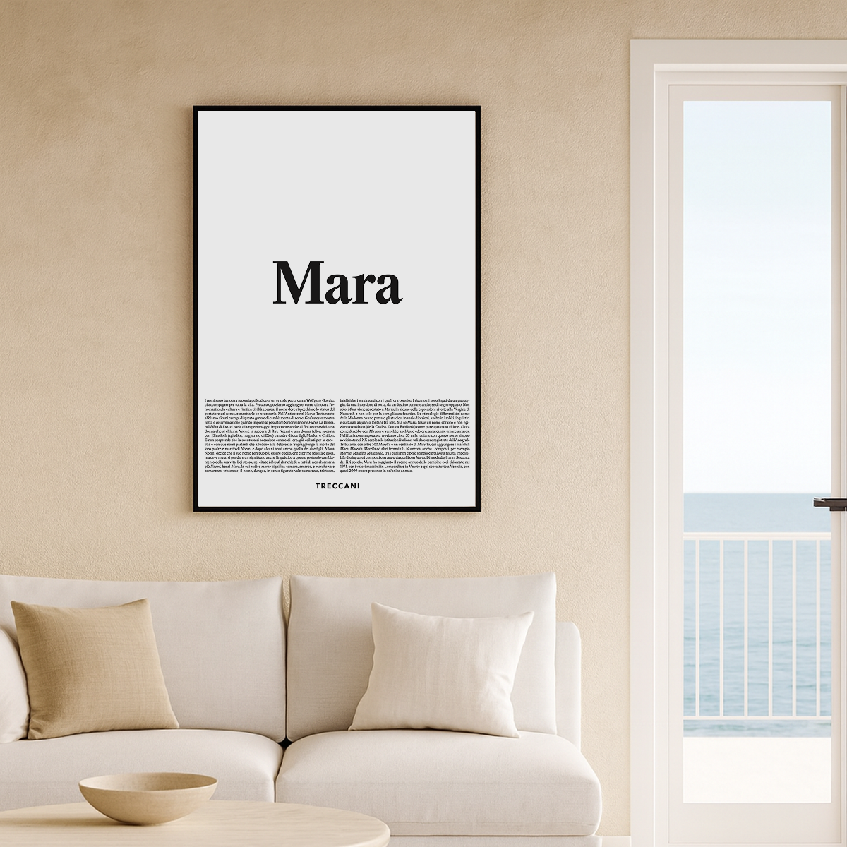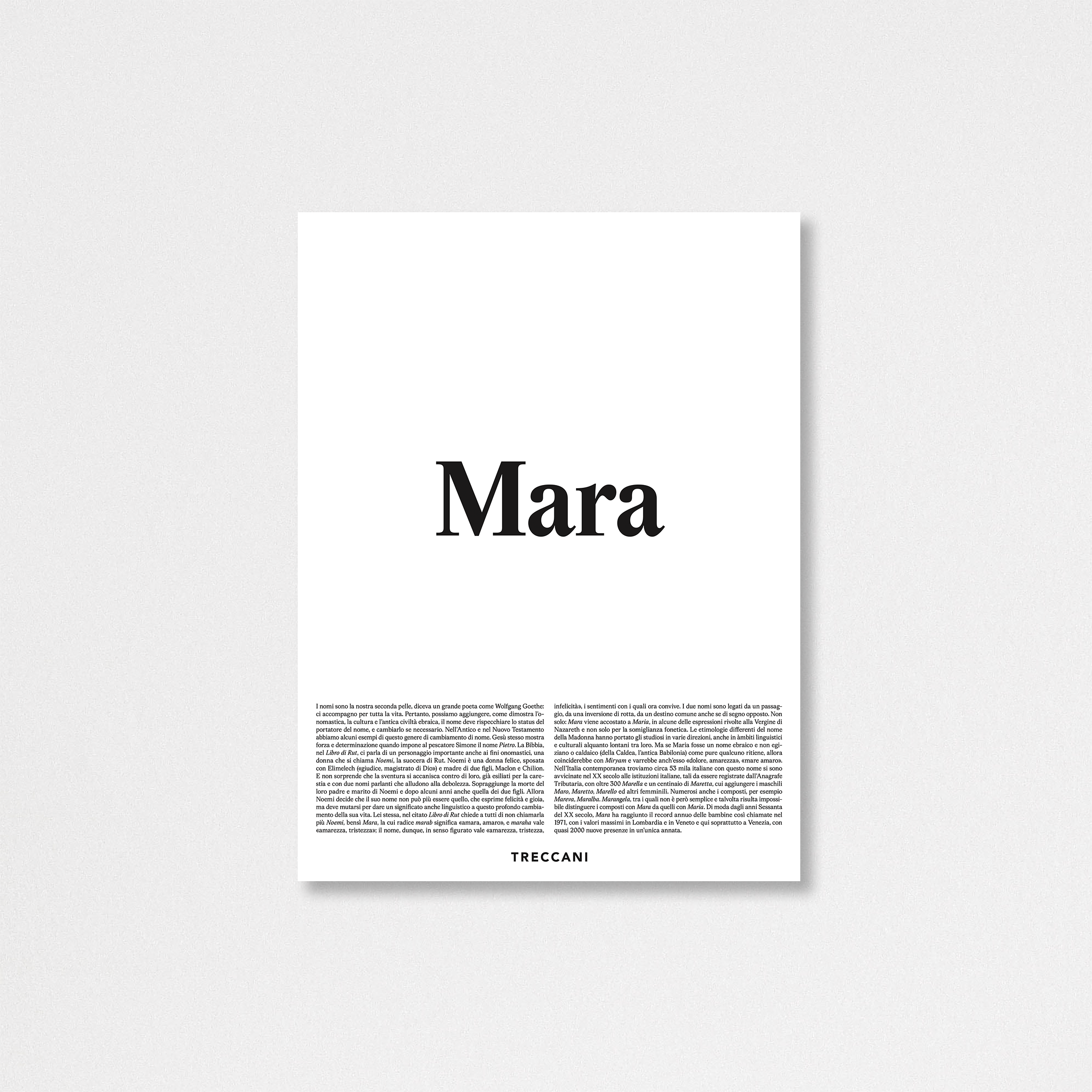 | Definizione | I nomi sono la nostra seconda pelle, diceva un grande poeta come Wolfgang Goethe: ci accompagno per tutta la vita. Pertanto, possiamo aggiungere, come dimostra l’onomastica, la cultura e l’antica civiltà ebraica, il nome deve rispecchiare lo status del portatore del nome, e cambiarlo se necessario. Nell’Antico e nel Nuovo Testamento abbiamo alcuni esempi di questo genere di cambiamento di nome. Gesù stesso mostra forza e determinazione quando impone al pescatore Simone il nome Pietro. La Bibbia, nel Libro di Rut, ci parla di un personaggio importante anche ai fini onomastici, una donna che si chiama Noemi, la suocera di Rut. Noemi è una donna felice, sposata con Elimelech («giudice, magistrato di Dio») e madre di due figli, Maclon e Chilion. E non sorprende che la sventura si accanisca contro di loro, già esiliati per la carestia e con due nomi parlanti che alludono alla debolezza. Sopraggiunge la morte del loro padre e marito di Noemi e dopo alcuni anni anche quella dei due figli. Allora Noemi decide che il suo nome non può più essere quello, che esprime felicità e gioia, ma deve mutarsi per dare un significato anche linguistico a questo profondo cambiamento della sua vita. Lei stessa, nel citato Libro di Rut chiede a tutti di non chiamarla più Noemi, bensì Mara, la cui radice marab significa «amara, amaro», e maraha vale «amarezza, tristezza»; il nome, dunque, in senso figurato vale «amarezza, tristezza, infelicità», i sentimenti con i quali ora convive. I due nomi sono legati da un passaggio, da una inversione di rotta, da un destino comune anche se di segno opposto. Non solo: Mara viene accostato a Maria, in alcune delle espressioni rivolte alla Vergine di Nazareth e non solo per la somiglianza fonetica. Le etimologie differenti del nome della Madonna hanno portato gli studiosi in varie direzioni, anche in àmbiti linguistici e culturali alquanto lontani tra loro. Ma se Maria fosse un nome ebraico e non egiziano o caldaico (della Caldea, l’antica Babilonia) come pure qualcuno ritiene, allora coinciderebbe con Miryam e varrebbe anch’esso «dolore, amarezza», «mare amaro». Nell’Italia contemporanea troviamo circa 53 mila italiane con questo nome si sono avvicinate nel XX secolo alle istituzioni italiane, tali da essere registrate dall’Anagrafe Tributaria, con oltre 300 Marella e un centinaio di Maretta, cui aggiungere i maschili Maro, Maretto, Marello ed altri femminili. Numerosi anche i composti, per esempio Mareva, Maralba. Marangela, tra i quali non è però semplice e talvolta risulta impossibile distinguere i composti con Mara da quelli con Maria. Di moda dagli anni Sessanta del XX secolo, Mara ha raggiunto il record annuo delle bambine così chiamate nel 1971, con i valori massimi in Lombardia e in Veneto e qui soprattutto a Venezia, con quasi 2000 nuove presenze in un’unica annata. |