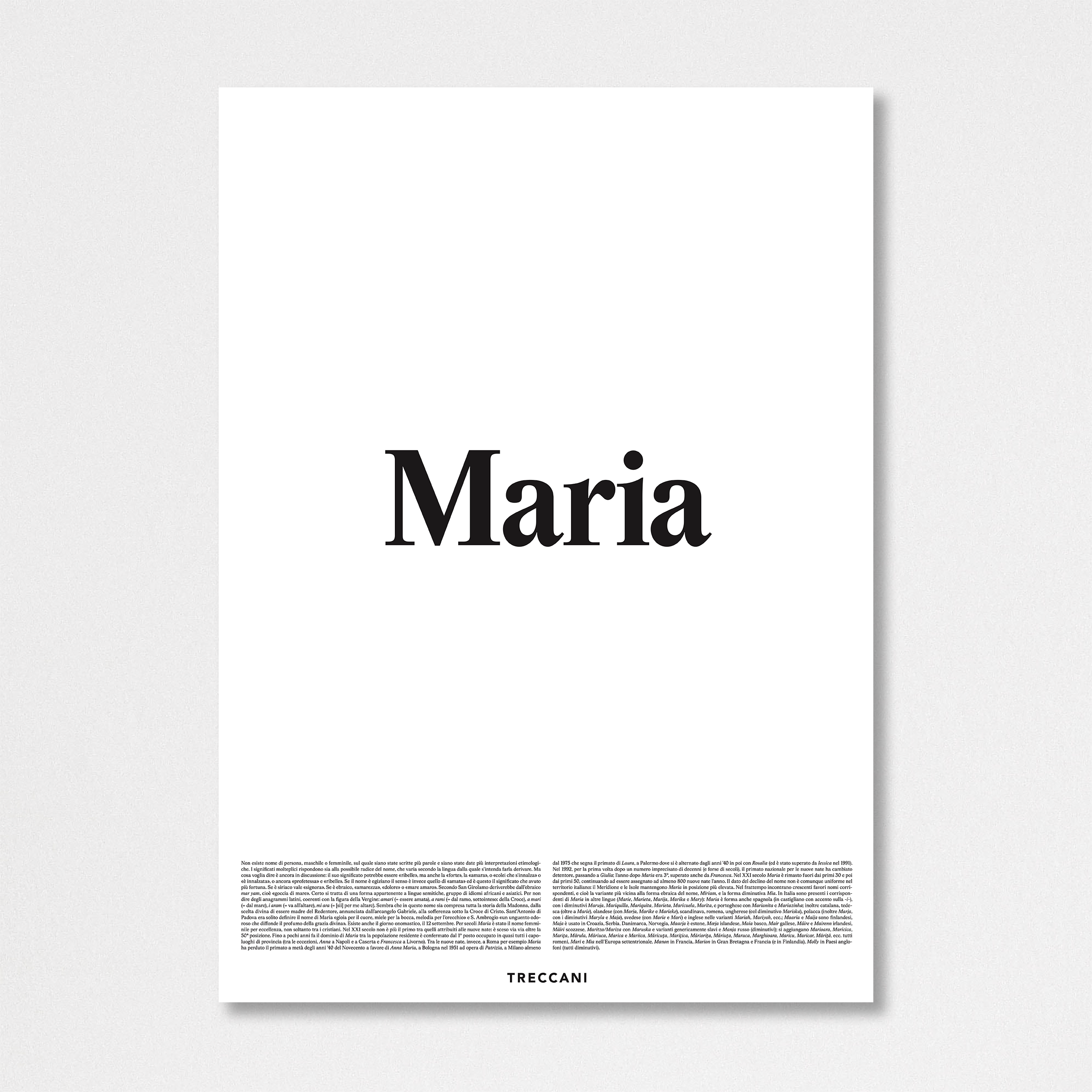 | Definizione | Non esiste nome di persona, maschile o femminile, sul quale siano state scritte più parole e siano state date più interpretazioni etimologiche. I significati molteplici rispondono sia alla possibile radice del nome, che varia secondo la lingua dalla quale s’intenda farla derivare. Ma cosa voglia dire è ancora in discussione: il suo significato potrebbe essere «ribelle», ma anche la «forte», la «amara», o «colei che s’innalza» o «è innalzata», o ancora «profetessa» e «ribelle». Se il nome è egiziano il senso è invece quello di «amata» ed è questo il significato che avuto più fortuna. Se è siriaco vale «signora». Se è ebraico, «amarezza», «dolore» o «mare amaro». Secondo San Girolamo deriverebbe dall’ebraico mar yam, cioè «goccia di mare». Certo si tratta di una forma appartenente a lingue semitiche, gruppo di idiomi africani e asiatici. Per non dire degli anagrammi latini, coerenti con la figura della Vergine: amari (= essere amata), a rami (= dal ramo, sottointeso: della Croce), a mari (= dal mare), i aram (= va all’altare), mi ara (= [sii] per me altare). Sembra che in questo nome sia compresa tutta la storia della Madonna, dalla scelta divina di essere madre del Redentore, annunciata dall’arcangelo Gabriele, alla sofferenza sotto la Croce di Cristo. Sant’Antonio di Padova era solito definire il nome di Maria «gioia per il cuore, miele per la bocca, melodia per l’orecchio» e S. Ambrogio «un unguento odoroso che diffonde il profumo della grazia divina». Esiste anche il giorno onomastico, il 12 settembre. Per secoli Maria è stato il nome femminile per eccellenza, non soltanto tra i cristiani. Nel XXI secolo non è più il primo tra quelli attribuiti alle nuove nate: è sceso via via oltre la 50ª posizione. Fino a pochi anni fa il dominio di Maria tra la popolazione residente è confermato dal 1º posto occupato in quasi tutti i capoluoghi di provincia (tra le eccezioni, Anna a Napoli e a Caserta e Francesca a Livorno). Tra le nuove nate, invece, a Roma per esempio Maria ha perduto il primato a metà degli anni ’40 del Novecento a favore di Anna Maria, a Bologna nel 1951 ad opera di Patrizia, a Milano almeno dal 1975 che segna il primato di Laura, a Palermo dove si è alternato dagli anni ’40 in poi con Rosalia (ed è stato superato da Jessica nel 1991). Nel 1992, per la prima volta dopo un numero imprecisato di decenni (e forse di secoli), il primato nazionale per le nuove nate ha cambiato detentore, passando a Giulia; l’anno dopo Maria era 3º, superato anche da Francesca. Nel XXI secolo Maria è rimasto fuori dai primi 30 e poi dai primi 50, continuando ad essere assegnato ad almeno 800 nuove nate l’anno. Il dato del declino del nome non è comunque uniforme nel territorio italiano: il Meridione e le Isole mantengono Maria in posizione più elevata. Nel frattempo incontrano crescenti favori nomi corrispondenti, e cioè la variante più vicina alla forma ebraica del nome, Miriam, e la forma diminutiva Mia. In Italia sono presenti i corrispondenti di Maria in altre lingue (Marie, Marieta, Marija, Marika e Mary): Maria è forma anche spagnola (in castigliano con accento sulla -i-), con i diminutivi Maruja, Mariquilla, Mariquita, Marieta, Maricuela, Marita, e portoghese con Marianita e Mariazinha; inoltre catalana, tedesca (oltre a Marie), olandese (con Marja, Marike e Marieke), scandinava, romena, ungherese (col diminutivo Mariska), polacca (inoltre Marja, con i diminutivi Maryla e Maja), svedese (con Marie e Mari) e inglese nelle varianti Mariah, Mariyah, ecc.; Maaria e Maija sono finlandesi, Maja è usato in Croazia, Serbia, Danimarca, Norvegia, Maarja è estone, Maja islandese, Maia basco, Mair gallese, Maire e Mairenn irlandesi, Mairi scozzese, Maritza/Mariza con Maruska e varianti genericamente slavi e Manja russo (diminutivi); si aggiungano Marioara, Maricica, Mariţa, Mărula, Măriuca, Marica e Mariica, Măricuţa, Mariţica, Mărioriţa, Măriuţa, Maruca, Marghioara, Maricu, Maricar, Măriţă, ecc. tutti romeni, Mari e Mia nell’Europa settentrionale, Manon in Francia, Marion in Gran Bretagna e Francia (e in Finlandia), Molly in Paesi anglofoni (tutti diminutivi). |
