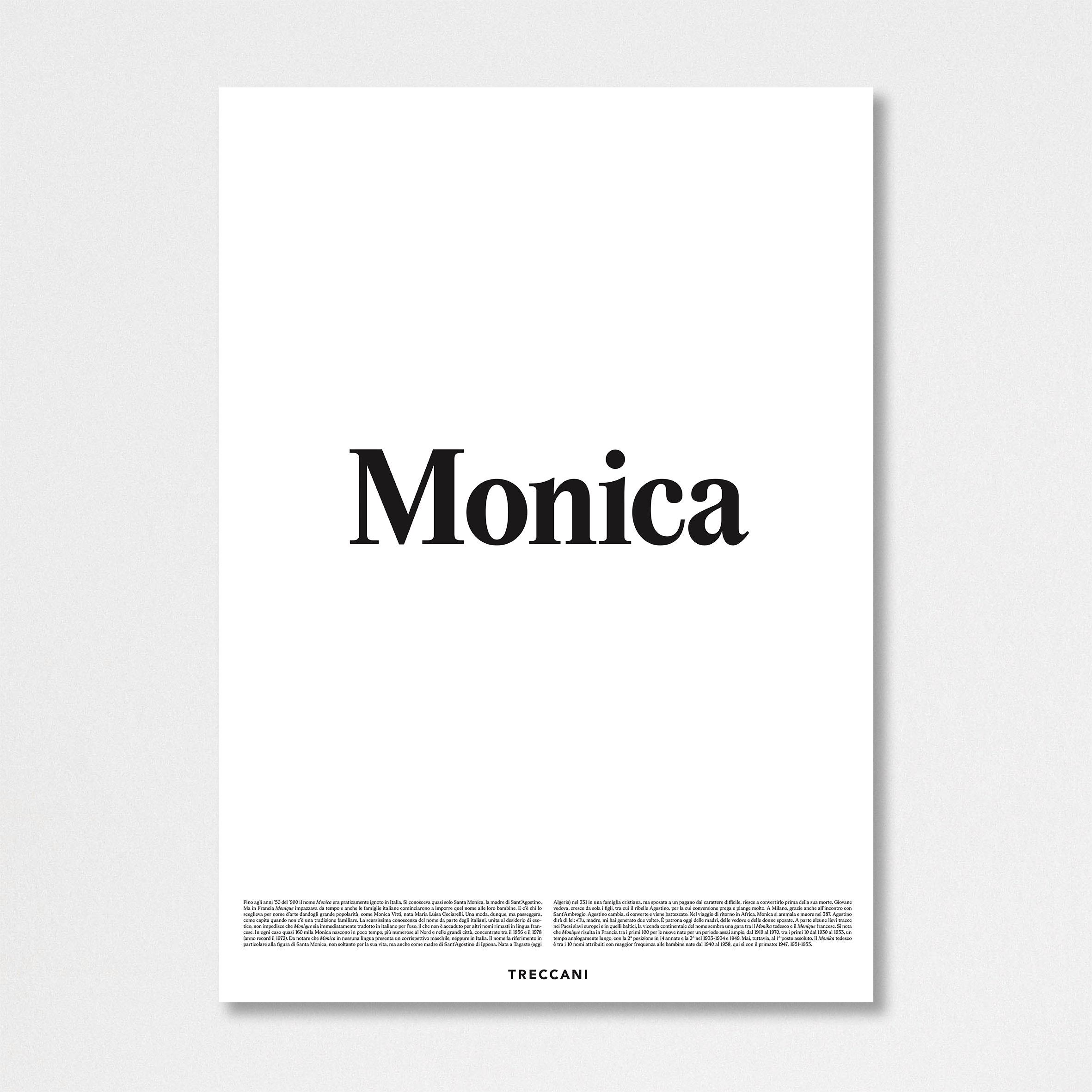 | Definizione | Fino agli anni ’50 del ’900 il nome Monica era praticamente ignoto in Italia. Si conosceva quasi solo Santa Monica, la madre di Sant’Agostino. Ma in Francia Monique impazzava da tempo e anche le famiglie italiane cominciarono a imporre quel nome alle loro bambine. E c’è chi lo sceglieva per nome d’arte dandogli grande popolarità, come Monica Vitti, nata Maria Luisa Ceciarelli. Una moda, dunque, ma passeggera, come capita quando non c’è una tradizione familiare. La scarsissima conoscenza del nome da parte degli italiani, unita al desiderio di esotico, non impedisce che Monique sia immediatamente tradotto in italiano per l’uso, il che non è accaduto per altri nomi rimasti in lingua francese. In ogni caso quasi 160 mila Monica nascono in poco tempo, più numerose al Nord e nelle grandi città, concentrate tra il 1956 e il 1978 (anno record il 1972). Da notare che Monica in nessuna lingua presenta un corrispettivo maschile, neppure in Italia. Il nome fa riferimento in particolare alla figura di Santa Monica, non soltanto per la sua vita, ma anche come madre di Sant’Agostino di Ippona. Nata a Tagaste (oggi Algeria) nel 331 in una famiglia cristiana, ma sposata a un pagano dal carattere difficile, riesce a convertirlo prima della sua morte. Giovane vedova, cresce da sola i figli, tra cui il ribelle Agostino, per la cui conversione prega e piange molto. A Milano, grazie anche all’incontro con Sant’Ambrogio, Agostino cambia, si converte e viene battezzato. Nel viaggio di ritorno in Africa, Monica si ammala e muore nel 387. Agostino dirà di lei: «Tu, madre, mi hai generato due volte». È patrona oggi delle madri, delle vedove e delle donne sposate. A parte alcune lievi tracce nei Paesi slavi europei e in quelli baltici, la vicenda continentale del nome sembra una gara tra il Monika tedesco e il Monique francese. Si nota che Monique risulta in Francia tra i primi 100 per le nuove nate per un periodo assai ampio, dal 1919 al 1970, tra i primi 10 dal 1930 al 1953, un tempo analogamente lungo, con la 2ª posizione in 14 annate e la 3º nel 1933-1934 e 1949. Mai, tuttavia, al 1º posto assoluto. Il Monika tedesco è tra i 10 nomi attribuiti con maggior frequenza alle bambine nate dal 1940 al 1958, qui sì con il primato: 1947, 1951-1953. |