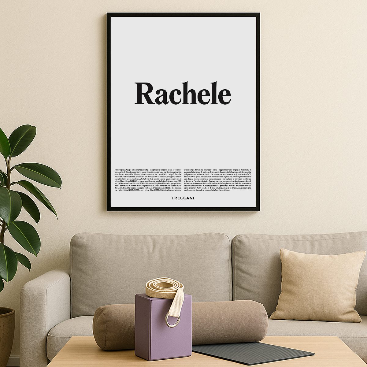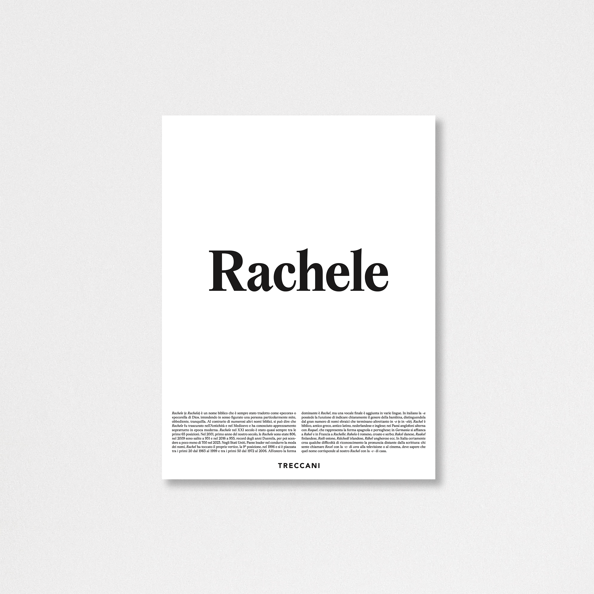 | Definizione | Rachele (e Rachela) è un nome biblico che è sempre stato tradotto come «pecora» o «pecorella di Dio», intendendo in senso figurato una persona particolarmente mite, obbediente, tranquilla. Al contrario di numerosi altri nomi biblici, si può dire che Rachele fu trascurato nell’Antichità e nel Medioevo e ha conosciuto apprezzamento soprattutto in epoca moderna. Rachele nel XXI secolo è stato quasi sempre tra le prime 65 posizioni. Nel 2001, primo anno del nostro secolo, le Rachele sono state 806, nel 2009 sono salite a 931 e nel 2016 a 955, record degli anni Duemila, per poi scendere a poco meno di 700 nel 2023. Negli Stati Uniti, Paese leader nel condurre la moda dei nomi, Rachel ha toccato il proprio vertice, la 9ª posizione, nel 1996 e si è piazzata tra i primi 20 dal 1983 al 1999 e tra i primi 50 dal 1972 al 2006. All’estero la forma dominante è Rachel, ma una vocale finale è aggiunta in varie lingue. In italiano la -a possiede la funzione di indicare chiaramente il genere della bambina, distinguendola dal gran numero di nomi ebraici che terminano altrettanto in -e (e in -ele). Rachel è biblico, antico greco, antico latino, nederlandese e inglese; nei Paesi anglofoni alterna con Raquel, che rappresenta la forma spagnola e portoghese; in Germania si affianca a Rahel e in Francia a Rachelle; Rahela è romeno, croato e serbo; Rakel danese, Raakel finlandese, Raili estone, Raicheal irlandese, Rahel ungherese ecc. In Italia certamente crea qualche difficoltà di riconoscimento la pronuncia distante dalla scrittura: chi sente chiamare Recel con la -c- di cera alla televisione o al cinema, deve sapere che quel nome corrisponde al nostro Rachel con la -c- di casa. |