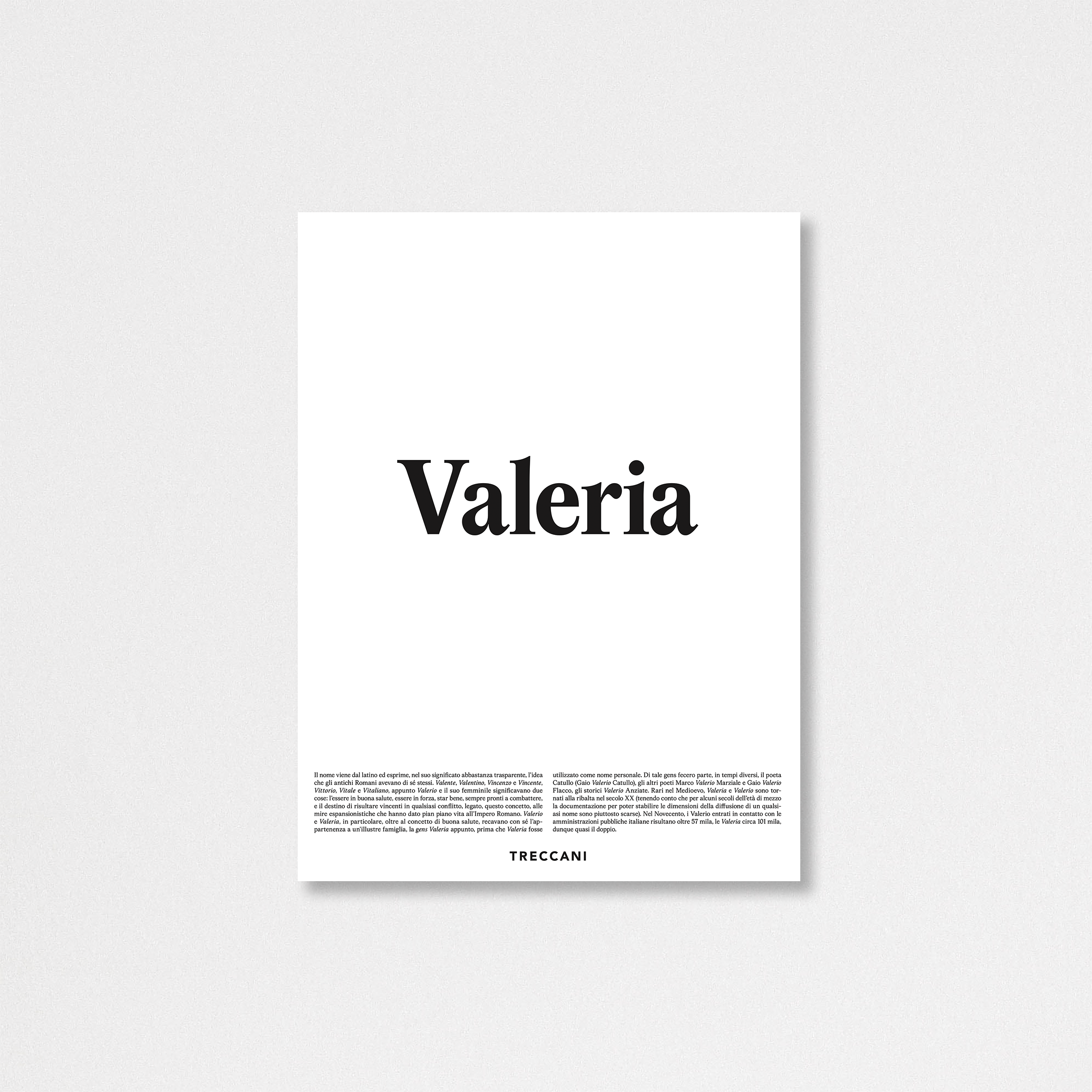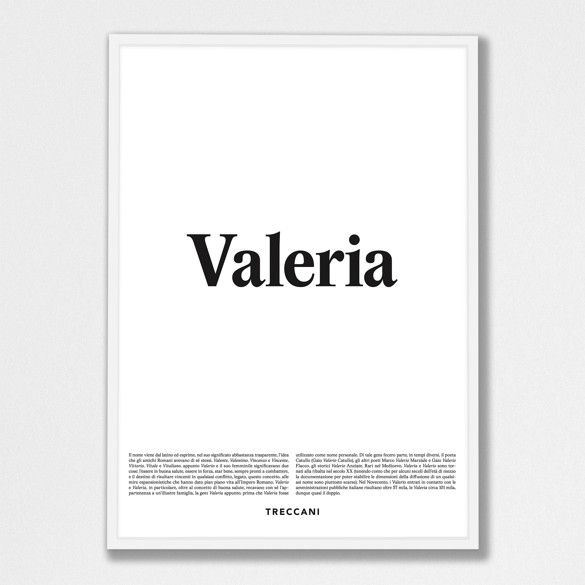 | Definizione | Il nome viene dal latino ed esprime, nel suo significato abbastanza trasparente, l’idea che gli antichi Romani avevano di sé stessi. Valente, Valentino, Vincenzo e Vincente, Vittorio, Vitale e Vitaliano, appunto Valerio e il suo femminile significavano due cose: l’essere in buona salute, essere in forza, star bene, sempre pronti a combattere, e il destino di risultare vincenti in qualsiasi conflitto, legato, questo concetto, alle mire espansionistiche che hanno dato pian piano vita all’Impero Romano. Valerio e Valeria, in particolare, oltre al concetto di buona salute, recavano con sé l’appartenenza a un’illustre famiglia, la gens Valeria appunto, prima che Valeria fosse utilizzato come nome personale. Di tale gens fecero parte, in tempi diversi, il poeta Catullo (Gaio Valerio Catullo), gli altri poeti Marco Valerio Marziale e Gaio Valerio Flacco, gli storici Valerio Anziate. Rari nel Medioevo, Valeria e Valerio sono tornati alla ribalta nel secolo XX (tenendo conto che per alcuni secoli dell’età di mezzo la documentazione per poter stabilire le dimensioni della diffusione di un qualsiasi nome sono piuttosto scarse). Nel Novecento, i Valerio entrati in contatto con le amministrazioni pubbliche italiane risultano oltre 57 mila, le Valeria circa 101 mila, dunque quasi il doppio. |