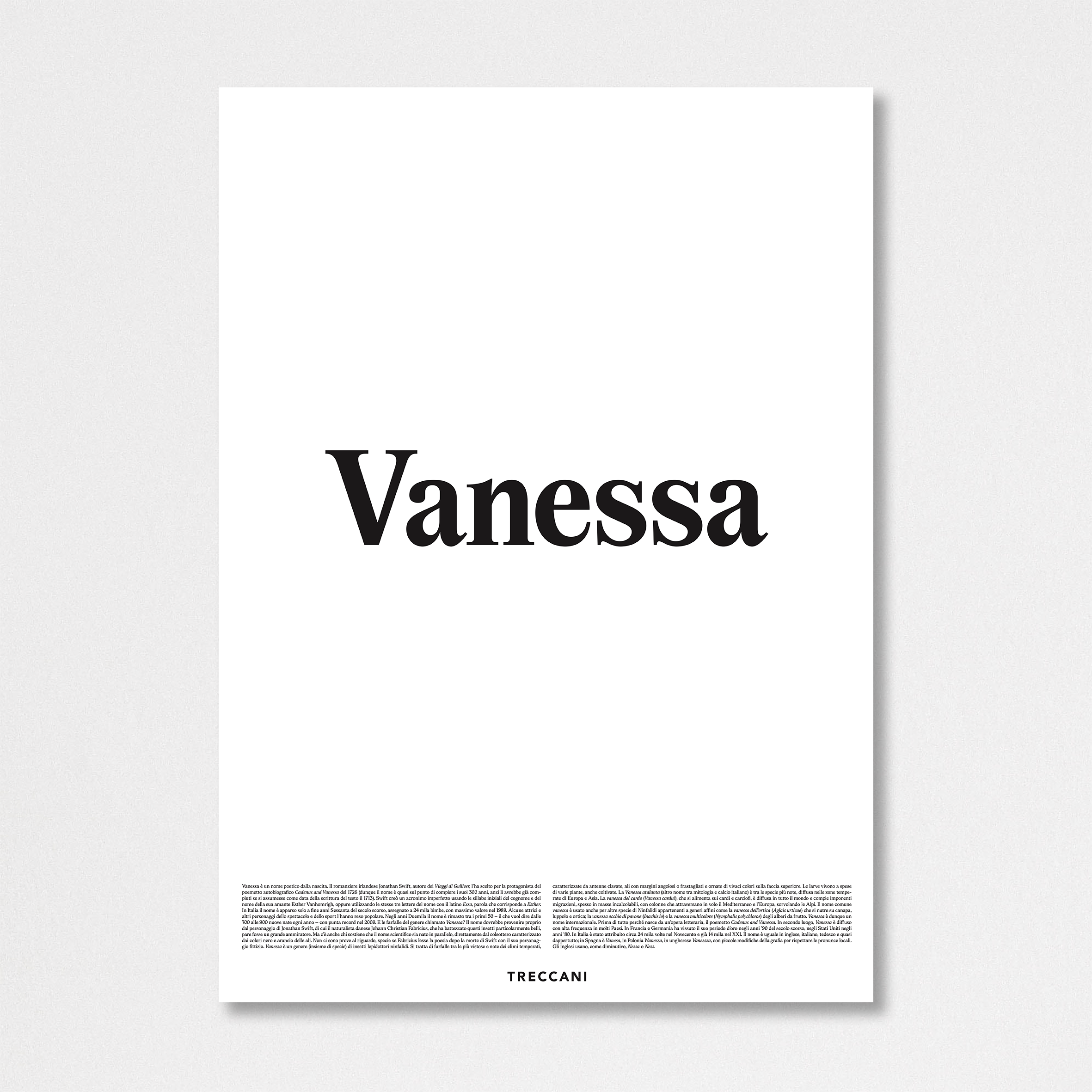 Vanessa è un nome poetico dalla nascita. Il romanziere irlandese Jonathan Swift, autore dei Viaggi di Gulliver, l’ha scelto per la protagonista del poemetto autobiografico Cadenus and Vanessa del 1726 (dunque il nome è quasi sul punto di compiere i suoi 300 anni, anzi li avrebbe già compiuti se si assumesse come data della scrittura del testo il 1713). Swift creò un acronimo imperfetto usando le sillabe iniziali del cognome e del nome della sua amante Esther Vanhomrigh, oppure utilizzando le stesse tre lettere del nome con il latino Essa, parola che corrisponde a Esther. In Italia il nome è apparso solo a fine anni Sessanta del secolo scorso, assegnato a 24 mila bimbe, con massimo valore nel 1989. Alcune attrici e altri personaggi dello spettacolo e dello sport l’hanno reso popolare. Negli anni Duemila il nome è rimasto tra i primi 50 – il che vuol dire dalle 700 alle 900 nuove nate ogni anno – con punta record nel 2009. E le farfalle del genere chiamato Vanessa? Il nome dovrebbe provenire proprio dal personaggio di Jonathan Swift, di cui il naturalista danese Johann Christian Fabricius, che ha bat- tezzato questi insetti particolarmente belli, pare fosse un grande ammiratore. Ma c’è anche chi sostiene che il nome scientifico sia nato in parallelo, direttamente dal coleottero caratterizzato dai colori nero e arancio delle ali. Non ci sono prove al riguardo, specie se Fabricius lesse la poesia dopo la morte di Swift con il suo personaggio fittizio. Vanessa è un genere (insieme di specie) di insetti lepidotteri ninfalidi. Si tratta di farfalle tra le più vistose e note dei climi temperati, caratterizzate da antenne clavate, ali con margini angolosi o frastagliati e ornate di vivaci colori sulla faccia superiore. Le larve vivono a spese di varie piante, anche coltivate. La Vanessa atalanta (altro nome tra mitologia e calcio italiano) è tra le specie più note, diffusa nelle zone temperate di Europa e Asia. La vanessa del cardo (Vanessa cardui), che si alimenta sui cardi e carciofi, è diffusa in tutto il mondo e compie imponenti migrazioni, spesso in masse incalcolabili, con colonne che attraversano in volo il Mediterraneo e l’Europa, sorvolando le Alpi. Il nome comune vanessa è usato anche per altre specie di Ninfalidi appartenenti a generi affini come la vanessa dell’ortica (Aglais urticae) che si nutre su canapa, luppolo e ortica; la vanessa occhio di pavone (Inachis io) e la vanessa multicolore (Nymphalis polychloros) degli alberi da frutto. Vanessa è dunque un nome internazionale. Prima di tutto perché nasce da un’opera letteraria, il poemetto Cadenus and Vanessa. In secondo luogo, Vanessa è diffuso con alta frequenza in molti Paesi. In Francia e Germania ha vissuto il suo periodo d’oro negli anni ’90 del secolo scorso, negli Stati Uniti negli anni ’80. In Italia è stato attribuito circa 24 mila volte nel Novecento e già 14 mila nel XXI. Il nome è uguale in inglese, italiano, tedesco e quasi dappertutto; in Spagna è Vanesa, in Polonia Wanessa, in ungherese Vanessza, con piccole modifiche della grafia per rispettare le pronunce locali. Gli inglesi usano, come diminutivo, Nessa o Ness. |
