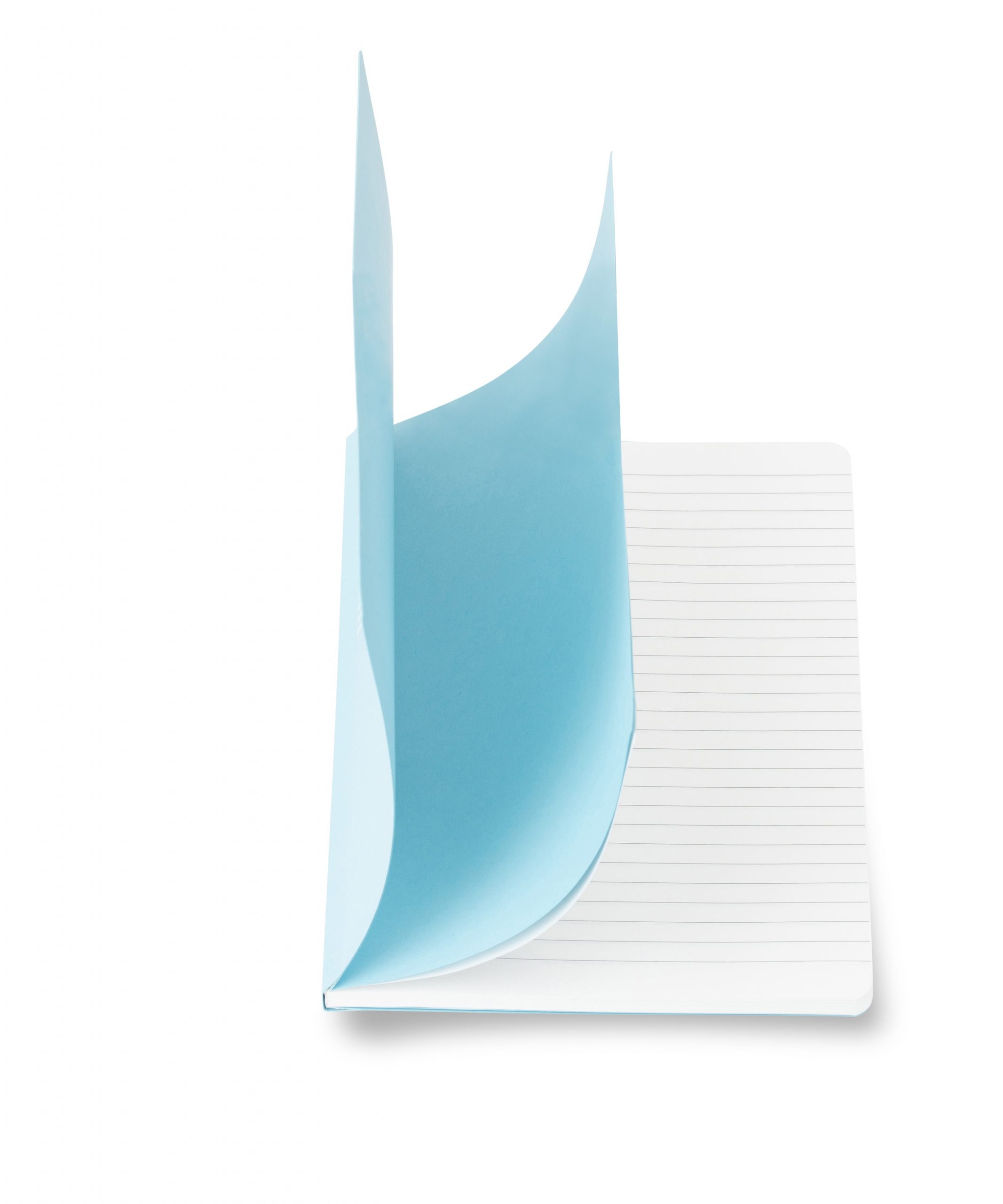 Dettagli | Copertina in cartoncino color celeste con stampa a caldo bianca; Carta da 90 g/m2 color avorio; Interno 80 pagine a righe; Formato chiuso cm 15x21 |