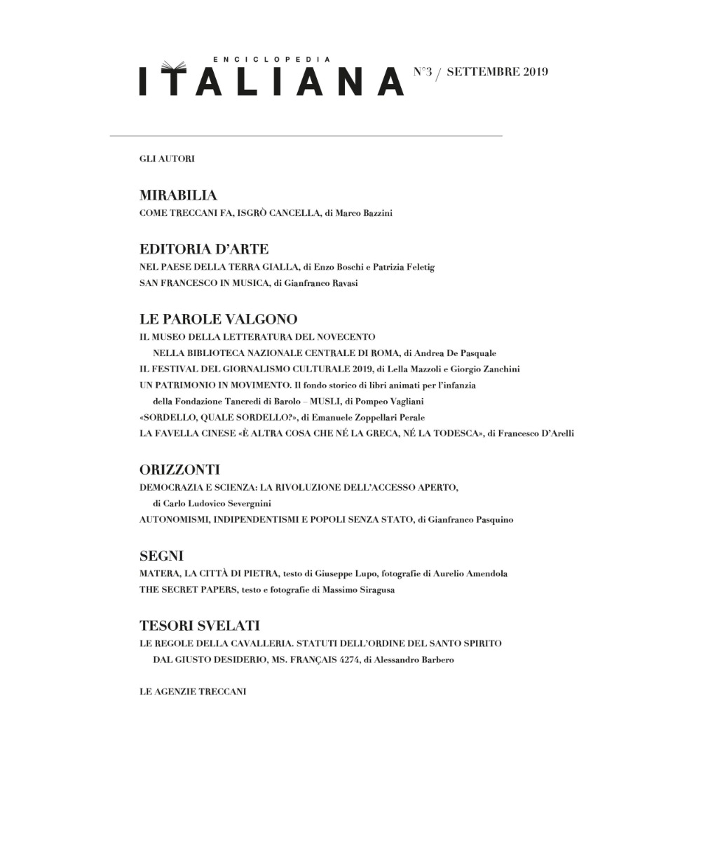 Rivista «Enciclopedia Italiana», n. 3/settembre 2019