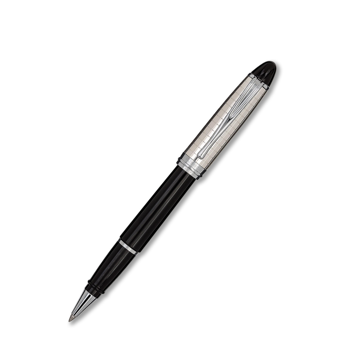 Dettagli | Resina nera; Cappuccio in argento guillochè quadra; Peso 31g; Dimensioni 13,6 cm x 1,72 cm x 1,45 cm |