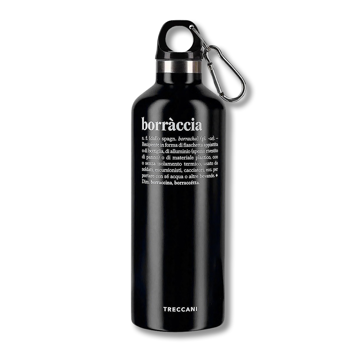 Bloc Notes: Copertina in cartoncino con stampa a caldo bianca; Carta da 90 g/m2 color avorio; Interno fogli staccabili; Area per inserire la data; Formato chiuso cm 15x21 Quaderno a righe: Copertina in cartoncino con stampa a caldo bianca; Carta da 90 g/m2 color avorio; Interno 80 pagine a righe; Formato chiuso cm 15x21 Borraccia: Borraccia termica in acciaio inossidabile per uso alimentare; Tappo in polipropilene a tenuta stagna con moschettone; Diametro 7,3cm; Altezza 23cm; Capienza 500ml |