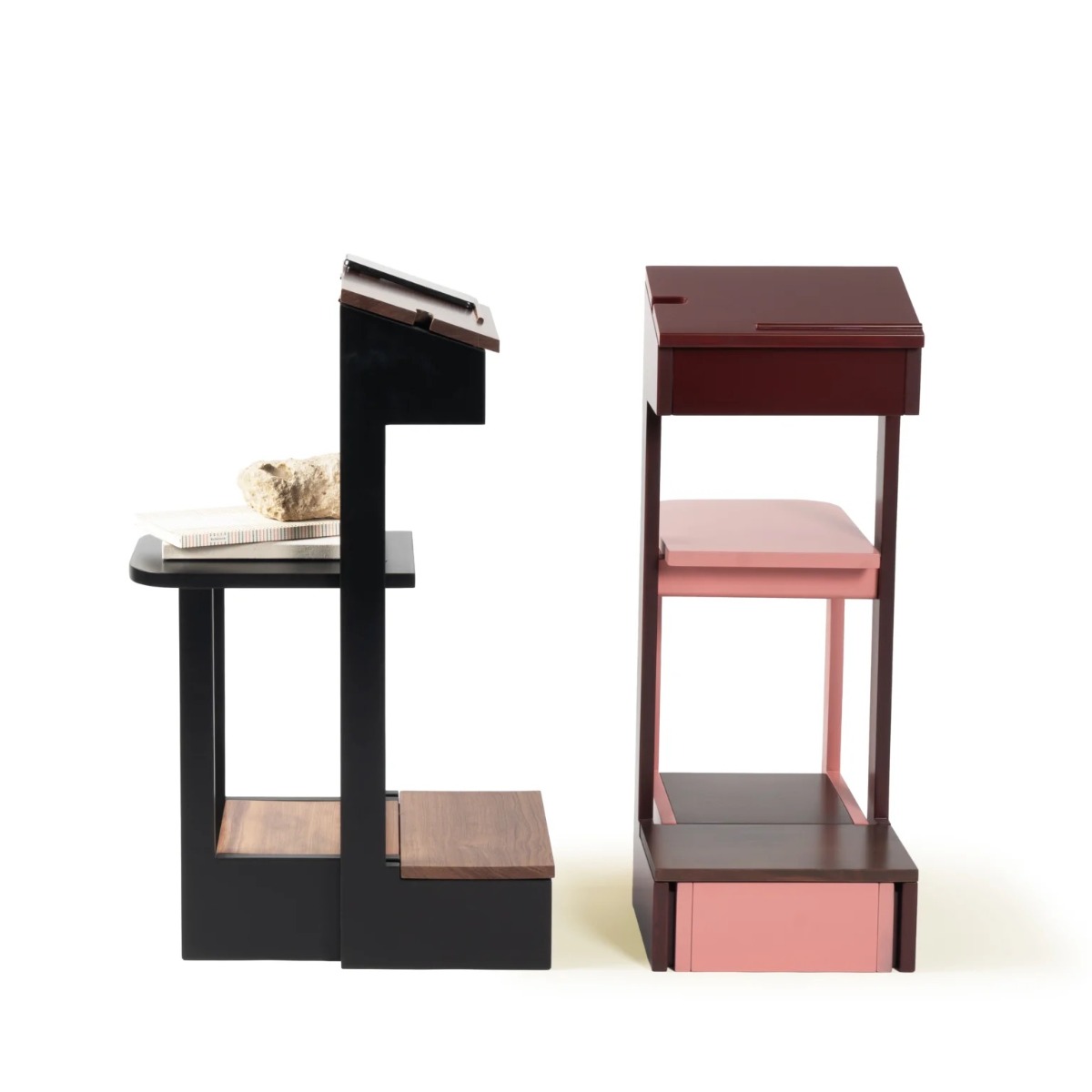 Edizione limitata Multistrato laccato nero opaco, essenza di bubinga. Dimensioni (cm): L 63 x P 138 x H 53 Realizzato a mano in Italia Multistrato laccato giallo e blu opaco, essenza di bubinga mordenzato blu. Dimensioni (cm): L 63 x P 138 x H 53 Realizzato a mano in Italia Multistrato laccato rosa e blordeaux opaco, essenza di bubinga mordenzato bordeaux.Dimensioni (cm): L 63 x P 138 x H 53 Realizzato a mano in Italia |
