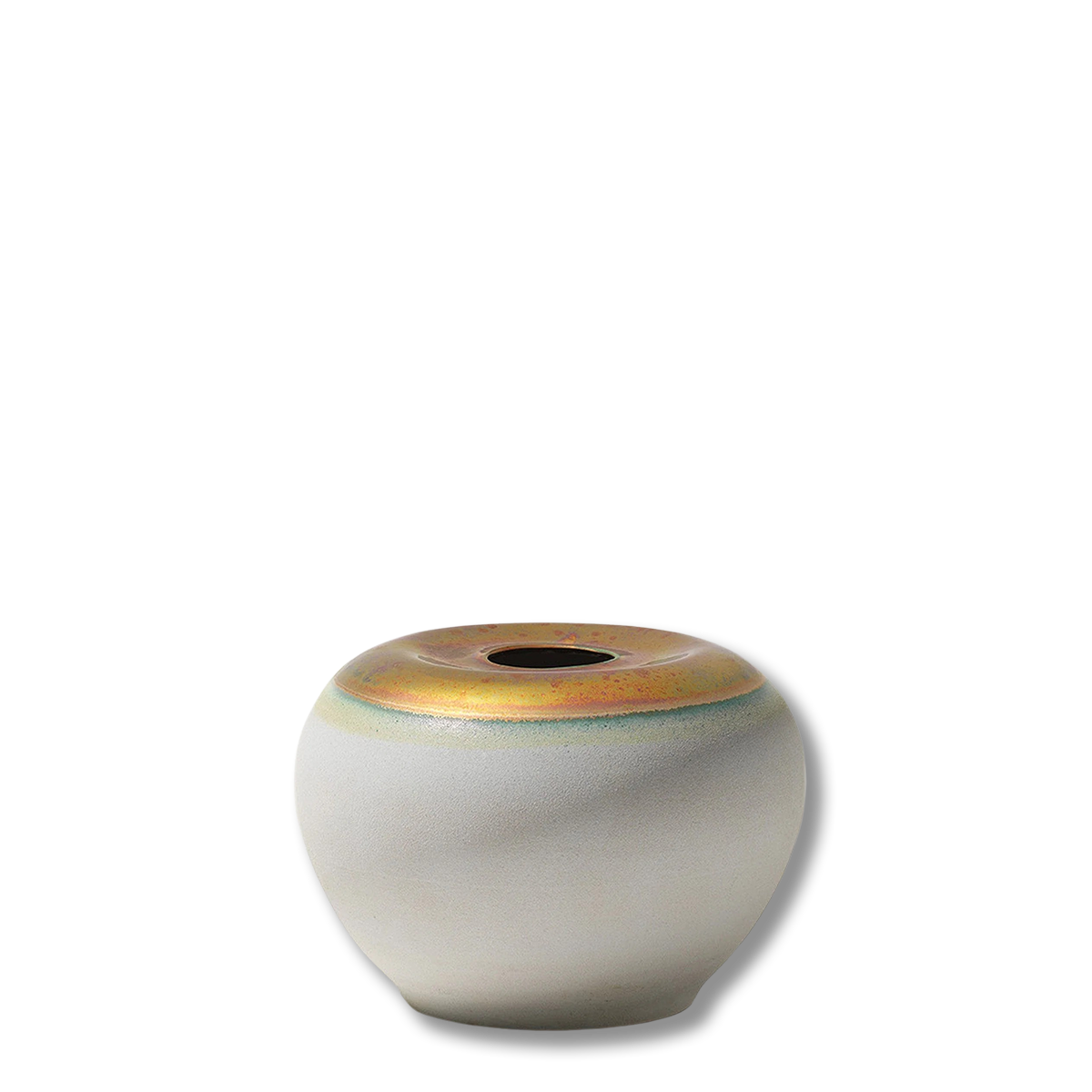Nata nel 1928 a Faenza, l’azienda Gatti si dedica da quasi un secolo alla produzione artigianale di oggetti in ceramica, distinguendosi per la mirata attenzione nella scelta dei materiali, per un’assidua ricerca di linguaggi e tecniche innovative che ancora oggi continuano a confermare una costante attenzione ai cambiamenti del contemporaneo e una processualità nella lavorazione della maiolica, interamente fatta a mano, che è il fiore all’occhiello di questa fabbrica storica. Tra i prodotti eleganti e ricercati della Collezione “Crateri” trovano spazio anche dei vasi, nei quali l’effetto del riflesso interno dialoga in contrasto con la superficie opaca dell’esterno reso possibile grazie all’utilizzo di smalti polverosi. Nel celebre Vaso Aurora, l’effetto riflettente dell’interno incontra la parte inferiore colorata in azzurro opaco, per un equilibrio perfetto che dona carattere ed eleganza.