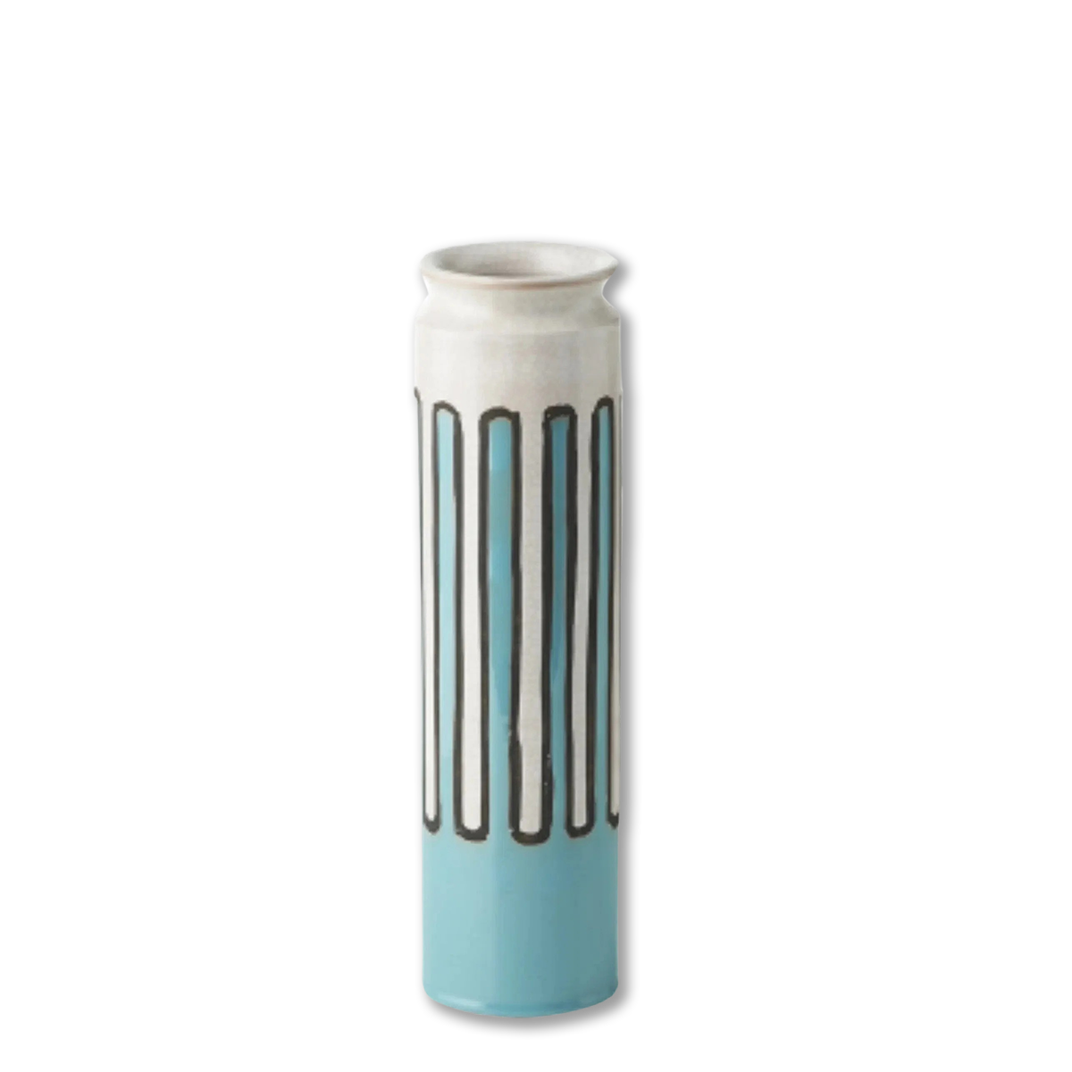 Con il suo aspetto allungato ed elegante Vaso cilindrico è uno dei pezzi più amati nella produzione di Bitossi Ceramiche, che dal 1921 è un’azienda leader nel settore della lavorazione della ceramica. Tornito a mano in terra rossa, Vaso cilindrico è delicatamente impreziosito dal decoro a greca con profili neri pennellati a cera, smalti turchese brillante e bianco craquelè. Si tratta di un oggetto di una bellezza semplice ed essenziale, perfetto per accompagnare l’ambiente di ogni casa e aggiungere un tocco di sobria raffinatezza.