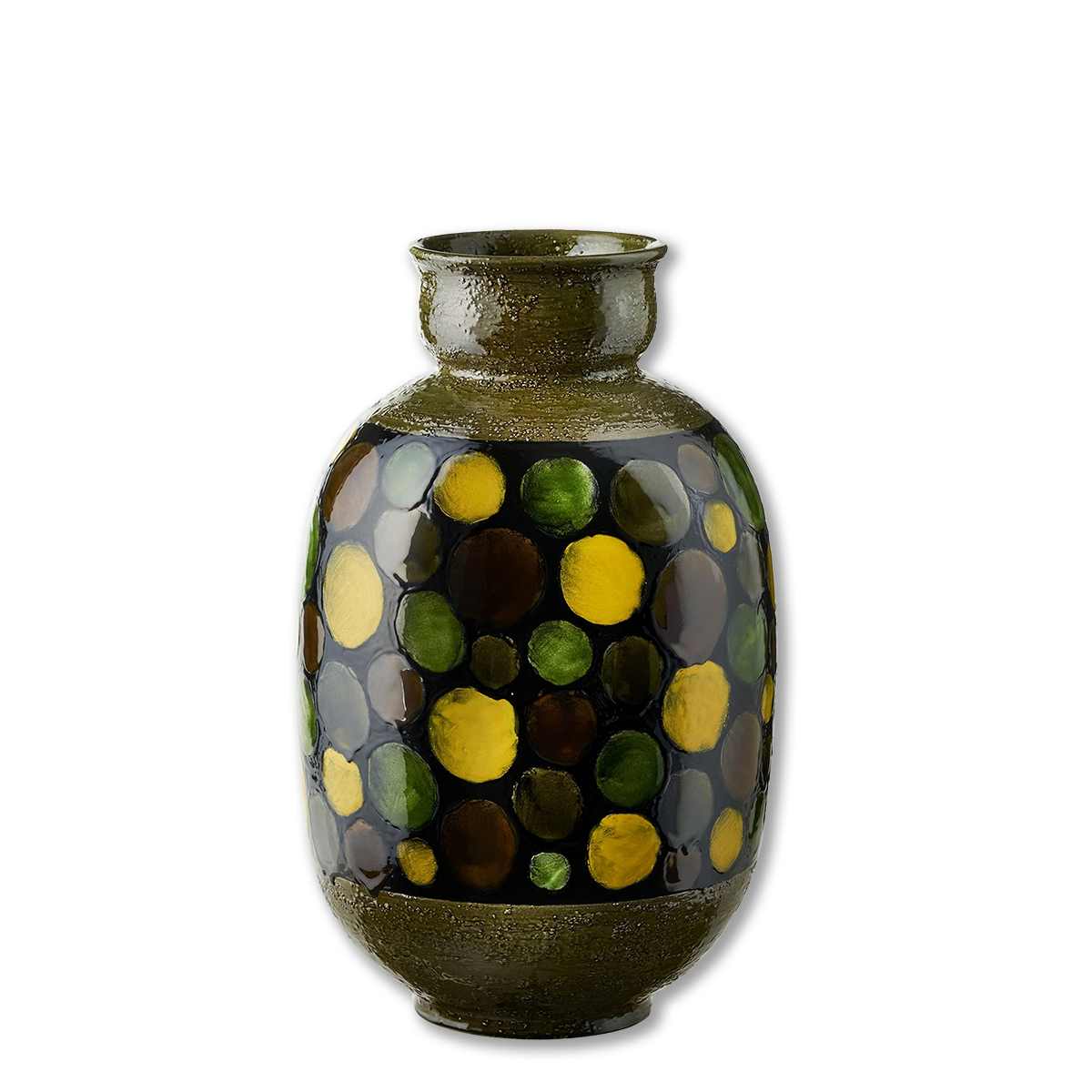 Vaso verde con cerchi su banda nera, Serie Sassi Colorati di Aldo Londi.
